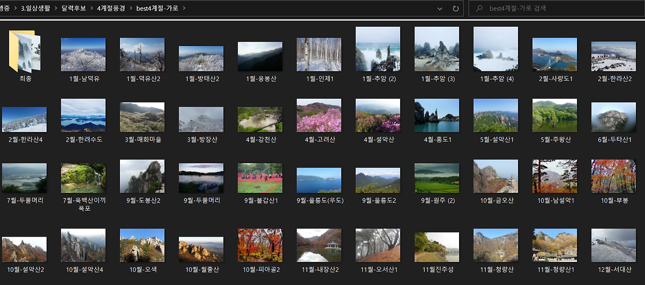 나는 여행을 좋아해서 이곳저곳 자주 돌아다니는 데 집에 오면 늘 수 백장의 사진이 카메라 메모리를 가득 채우곤 했다. 여행 전문가들은 여행을 마치면 제일 먼저 하는 일이 사진을 정리하는 일이라는 데 나는 전혀 그렇지 못하다. 다행스러운 것은 그나마 외장하드에 여행지마다 폴더를 만들어 두었다는 것일 게다. 쓸만한 사진만 따로 골라두질 않았으니 활용하는 일도 거의 없게 되고 방치되었다는 말이 맞을지도 모르겠다. 용량이 꽤 되는 하드웨어를 사진으로 가득 채울 무렵 나는 한 가지를 계획했다. 멋진 풍경 사진으로 달력을 만들어 친구들에게 선물하는 일이다. 생각만 해도 가슴 설레었다. 하루는 날을 잡아 드디어 사진 폴더를 뒤지기 시작했다. 맘에 드는 사진을 가로, 세로 타입으로 분류해 달력 후보군을 만들었다. 후보군 중에서 다시 한번 작업을 거쳐 마침내 최종 작품을 선정했다. 일 년 12개월에 맞는 사진을 고르는 일이 쉽지는 않았지만 매우 그럴듯했다. 이제 인쇄소를 정해 주문만 하면 되었다. 그런데 어찌 된 셈인지 주문 단계에서 머뭇거리는 나를 보았다. 이유는 몰랐다. 추정컨데 마땅한 인쇄소를 찾는 번거로움과 손에 쥐게 될 견적서의 비용이 부담으로 왔는지도 모르겠다.