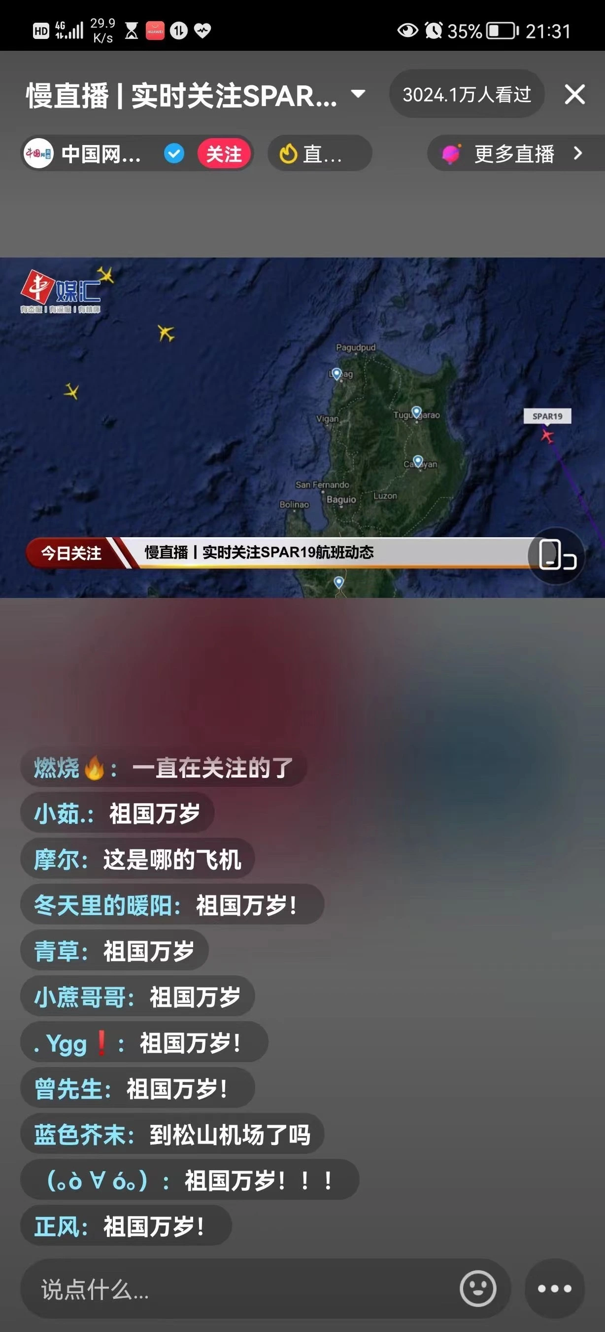 위 사진에는 중국 전투기의 노선이 나와 있고 그 밑으로 실시간 댓글이 달려있는데 반복적으로 나오는 말이 ‘조국 만세’라는 말이다. 역시 축구 중계를 기다리는 ‘계속 기다리고 있다’는 말도 보인다.