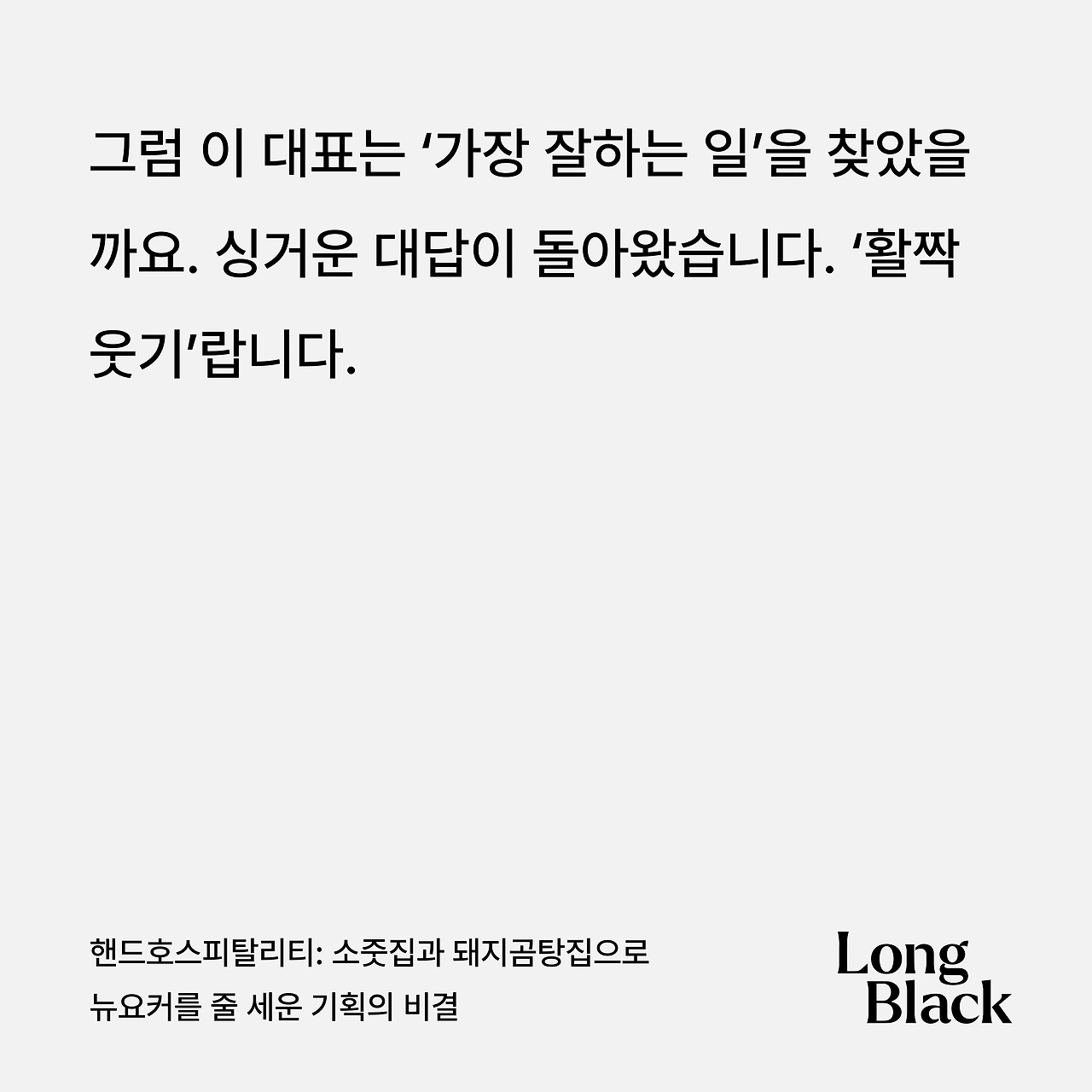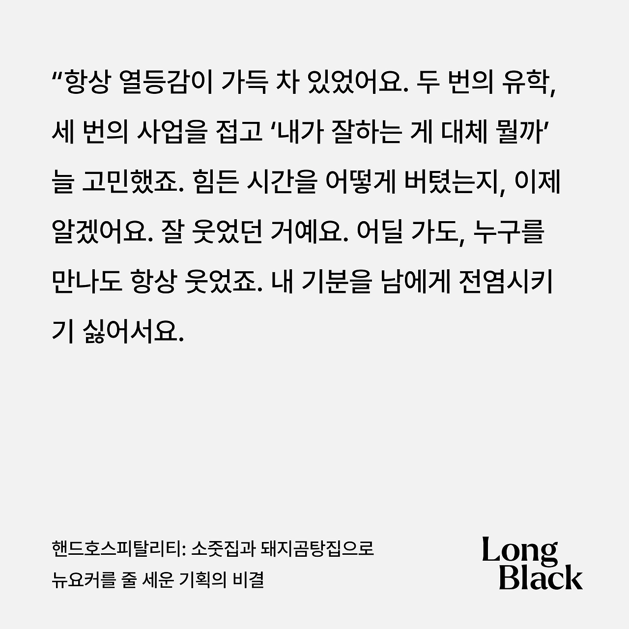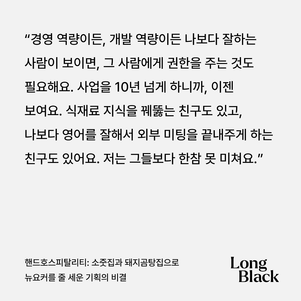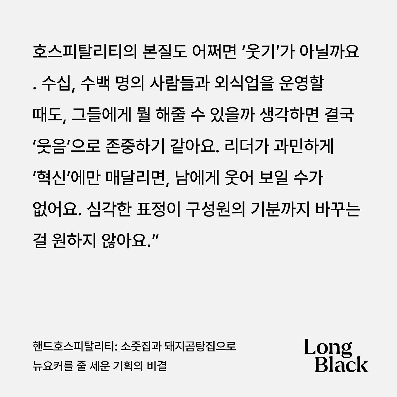 이기현 핸드호스피탈리티 대표의 롱블랙 인터뷰 중에서, 인상 깊은 내용을 만났다.
