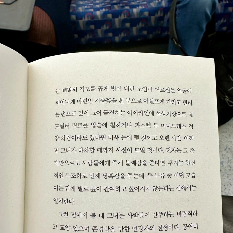 영국 지하철엔 종이 신문을 보거나 책을 읽는 사람을 서울에서보다 잦은 빈도로 볼 수 있다. 이 나라의 오래된 지하철 안에선 휴대폰 데이터가 자주 안 터지기 때문이라고 혼자 결론지었다. 그럴 만도 한 게 런던의 지하철이 개통된 해는 1863년이라니 1차 세계대전보다도 50년 전이다...! 그 가운데서 나도 자신 있게 책을 꺼내었다. 이들의 일상에 익숙하게 스며들어가고 싶다는 열망이었을까나. 책장을 얼마나 넘겼을까, 저들은 알아볼 수 없는 꼬부랑글씨로 쓰여있는 소설책을 읽고 있다는 사실이 괜히 은밀하고 퍽 흐뭇하다. 늬들 이거 무슨 뜻인지 모르지. 나만 알지. 일상 속 이들과 다름없는 아무개가 되기 위해 흉내 내면서 나만 가지고 있는 특별함에 방점을 찍고 있는 모순을 발견한다. 평범하면서도 다르고 싶은 건 대체 무슨 심보야?