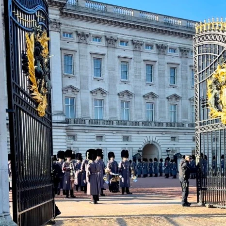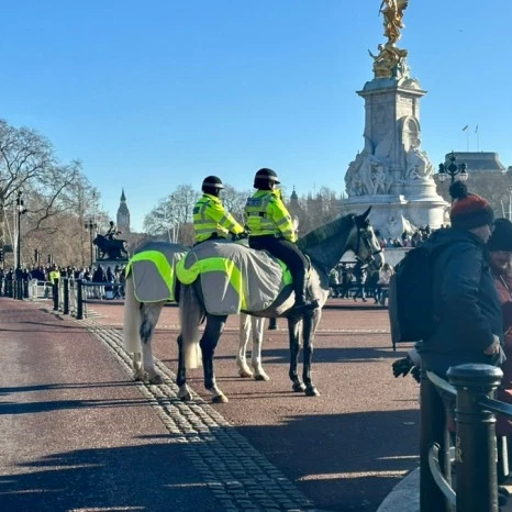 숙소에 가는 지름길은 버킹엄 궁전 앞을 지난다. 러닝의 열기가 식고 땀이 마르면서 으슬으슬 추워지고 있어서 아무 고민 없이 지름길을 택했는데, 유독 궁전 앞에 사람이 너무 많은 거다. 심지어 온 사방에 경찰들이 한가득 있어서 설마 교대식인가.. 했는데 정말이었다. 인파에 북적이는 장소를 선호하지 않아 교대식은 한 번도 본 적이 없었는데 이렇게 뜻밖의 순간에 근위병 교대식을 보게 되다니. 잠깐 구경하고 가던 길 가려고 했으나 교대식이 시작하면 아예 옴짝달싹 못 하게 이동을 통제하기에 꼼짝없이 처음부터 끝까지 보게 됐다. 말 타고 호위하는 경찰 얼마나 멋있게요..?