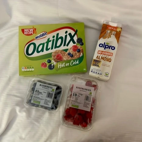 숙소 앞에는 아주 큰 Sainsbury's 마트가 있다. 생수를 사러 갔다가 이것저것 담았다. 예전에 자주 사 먹던 위타빅스를 찾아보고자 들른 시리얼 코너에서 오티빅스라는 신상품을 발견했다. 현미로 만든 위타빅스에서 진화해 오트밀로 만든 오티빅스까지 나오다니. 포장을 뜯으면 마치 소여물처럼 생긴, 아주 잘게 바스러지는 큐브 모양을 하고 있다. 여기에 아몬드 우유를 부으면 금세 죽처럼 꾸덕꾸덕해지는데, 밍밍한 맛인데도 계속 손이 간다. 한국에는 아직 정식 수입이 안 돼서 직구를 해야 하는 너란 아이. 즐길 수 있을 때 맘껏 누려주겠다.