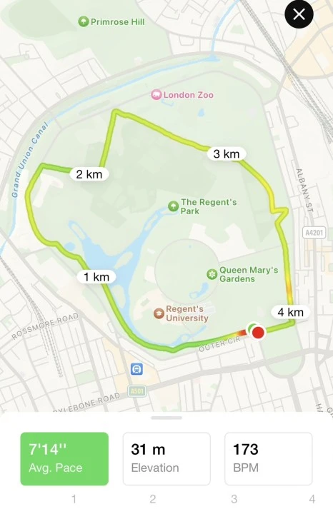 영하 2도의 달리기는 예상보다 훨씬 할 만했다. 공원 지리가 익숙하지 않아 예쁜 원이 그려지진 않았기에 아쉬웠지만 오늘만 날이 아니니까. 떠나기 전엔 꼭 런던 시내도 달려보기로.