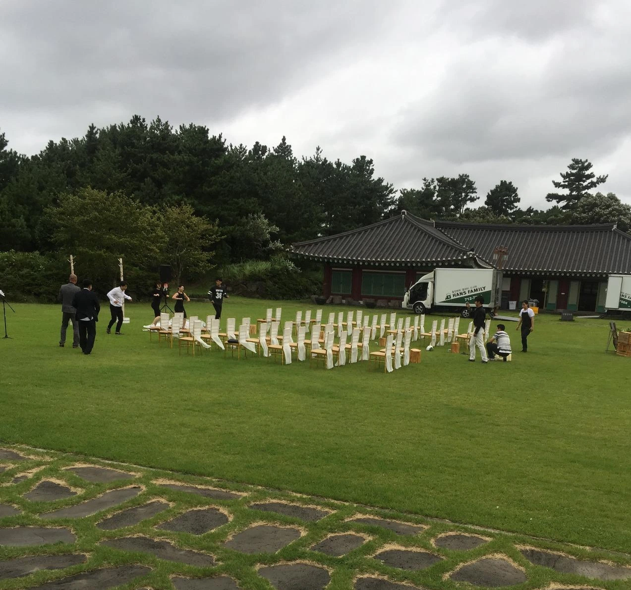 결혼식은 참으로 긴박했다. 2017년 9월 16일, 하필 태풍 탈림이 제주로 북상하고 있었다. 문제는 야외 결혼식이었다는 것. 육지에서 자주 가던 웨딩홀 결혼식처럼 15분 만에 후다닥 일을 치르고 싶지 않아서 내가 야외를 고집했다. 마침 제주도에는 생각보다 저렴하게 잔디밭을 빌려주는 장소가 있었다. 우천 시 예식을 올릴 수 있는 공간도 있긴 했지만, 1970년대 부모님 결혼사진에서나 볼 법한 모습이었다. 태풍이 비껴가길 바라는 수밖에 없었다.