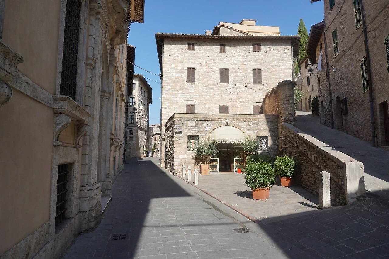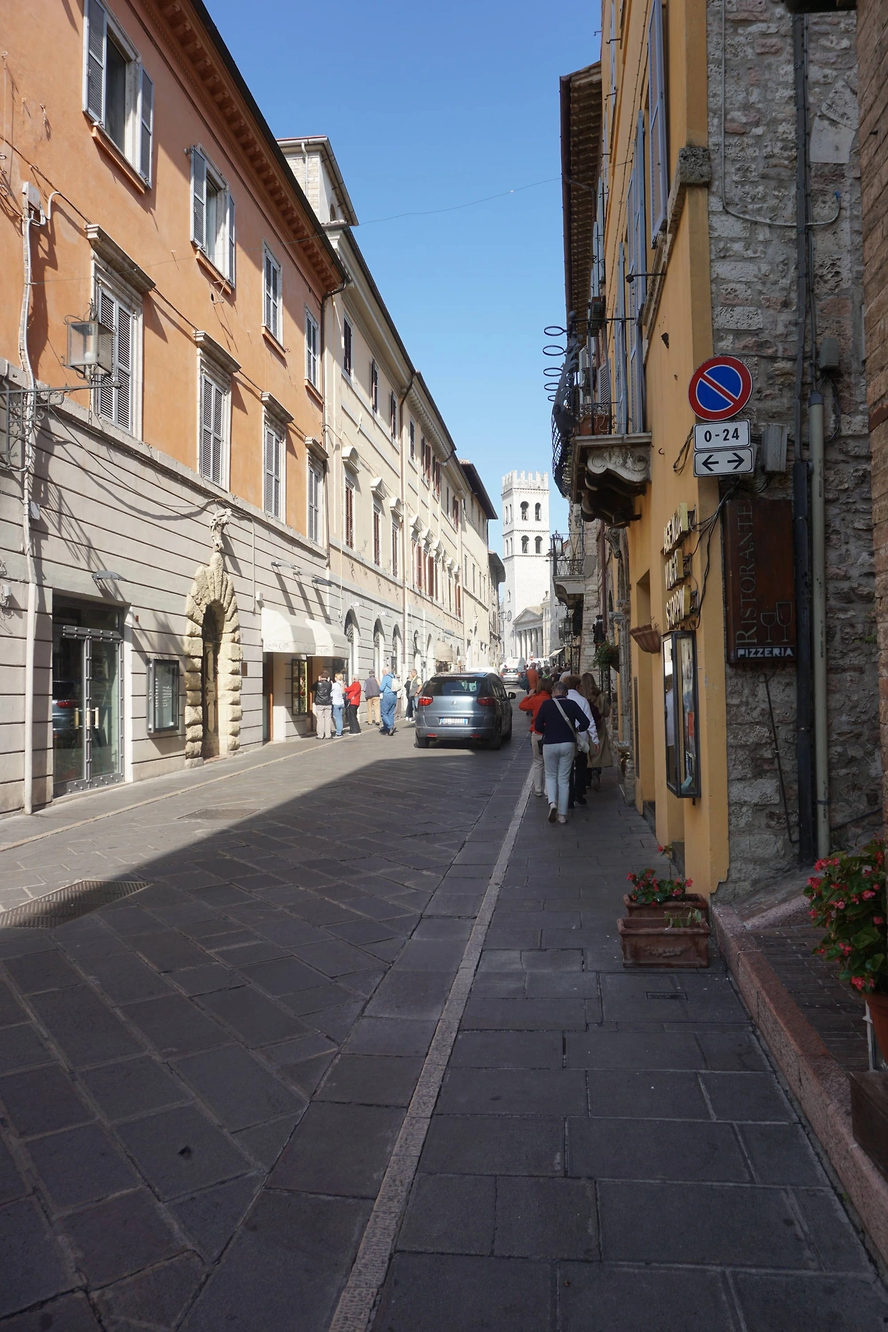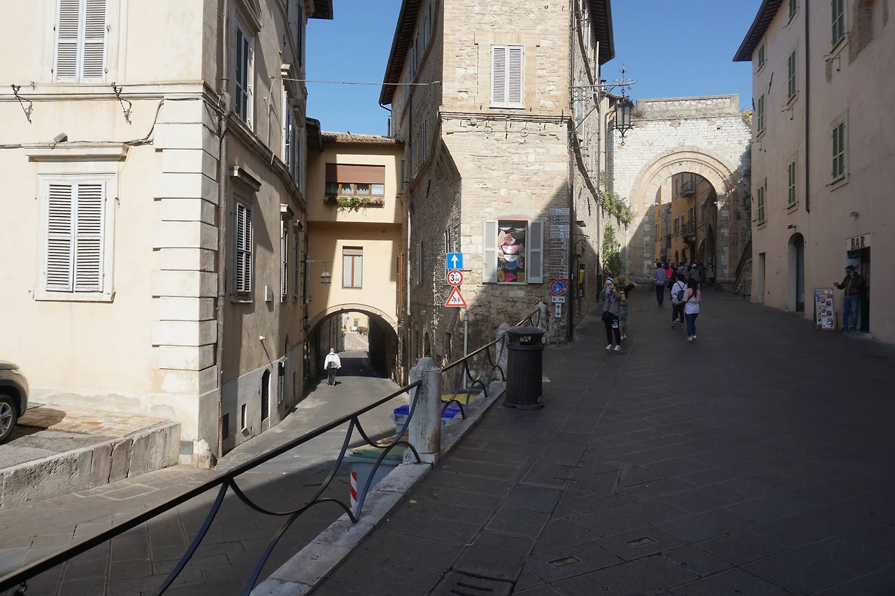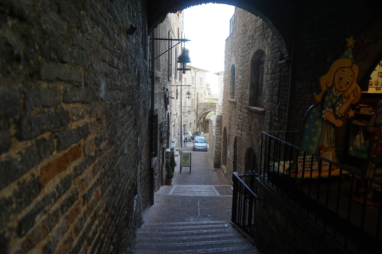 아시시에서 자주 볼 수 있는 갈림길이자 도시가 만들어진 원리를 잘 보여주는 장면이다.