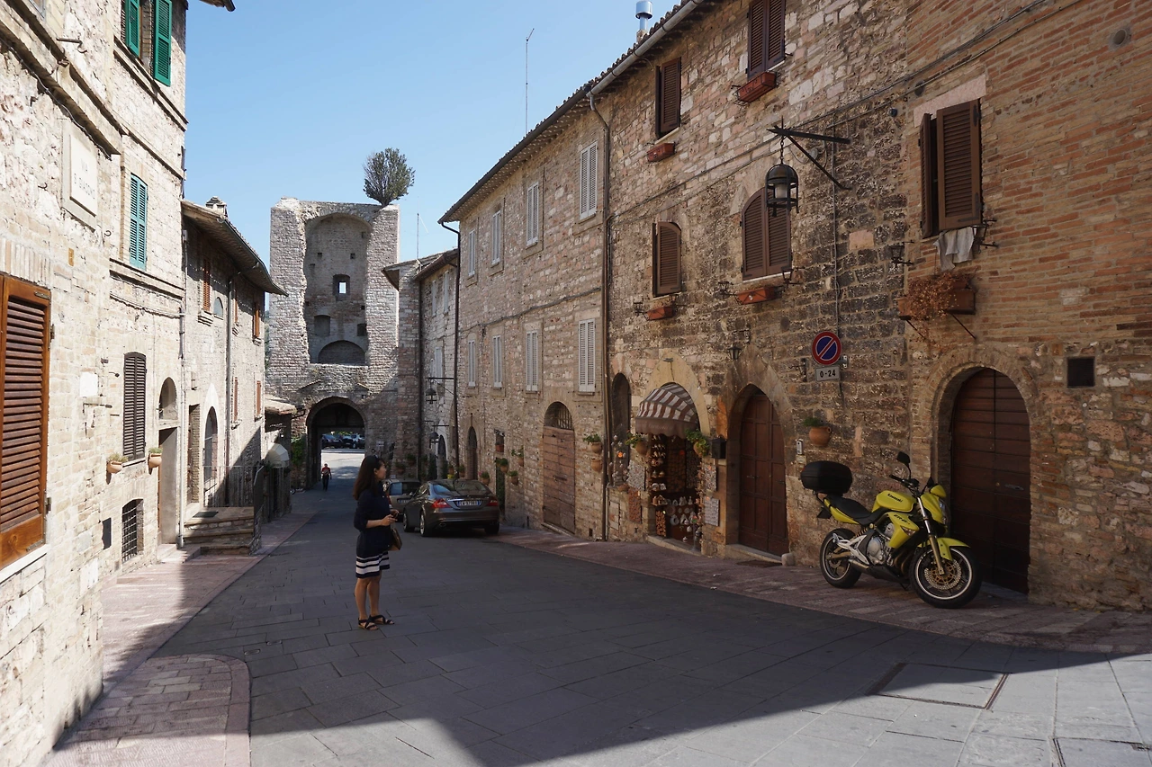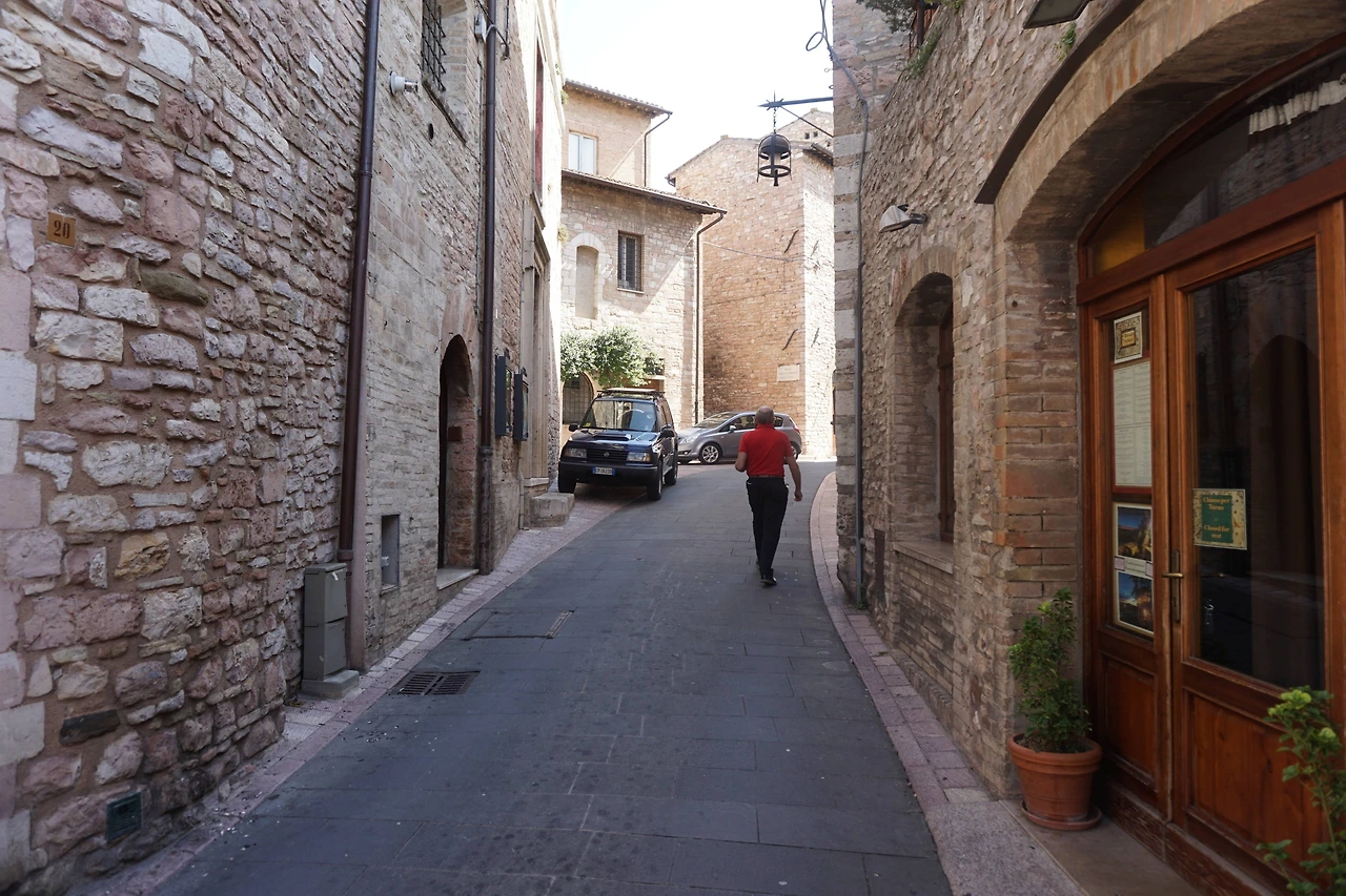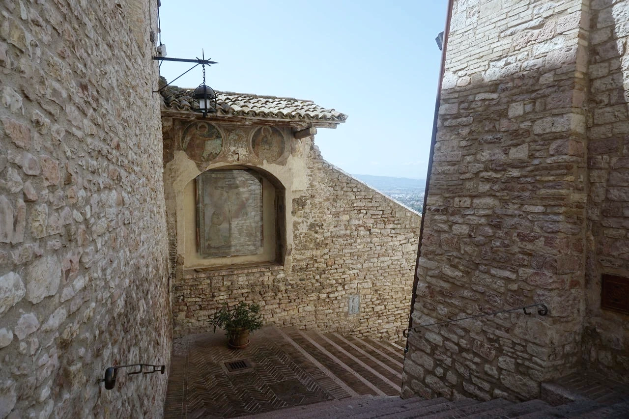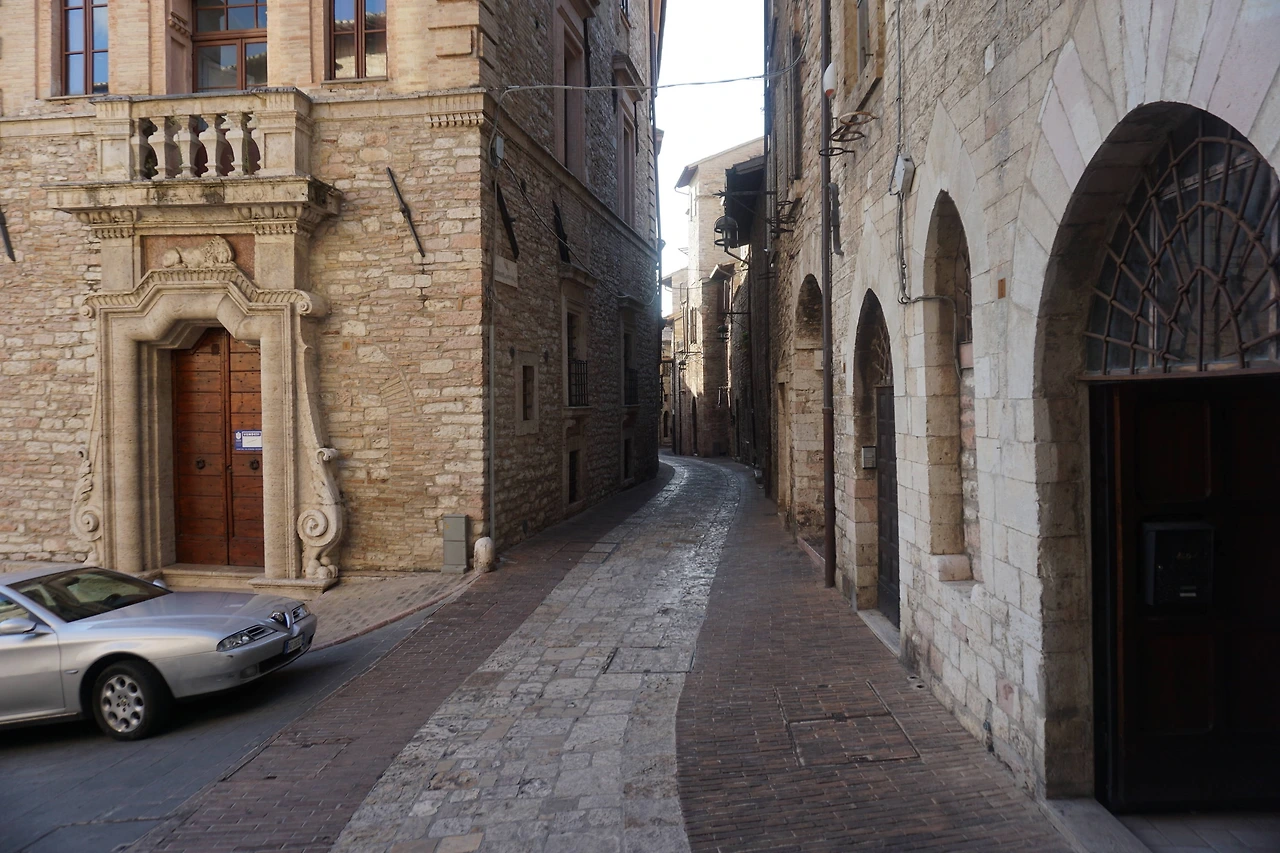 오르막의 경사는 차가 다닐 수 있는 정도다. 이 정도의 도로는 아시시에서도 꽤 넓은 편에 속한다. 성 프란치스코 성당에서 성문으로 이어진 길이어서 마차가 다닐 수 있어야 했기 때문이리라.