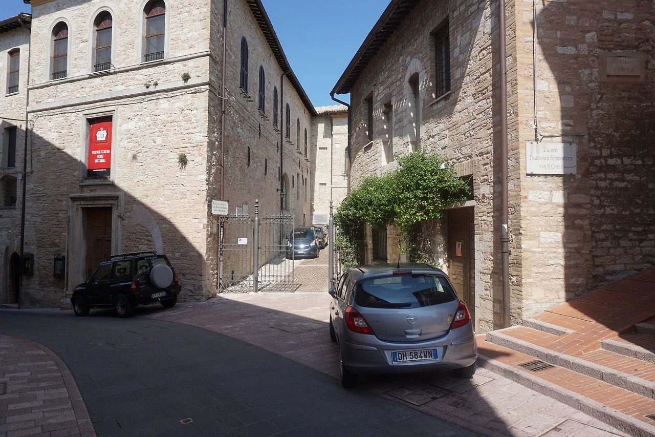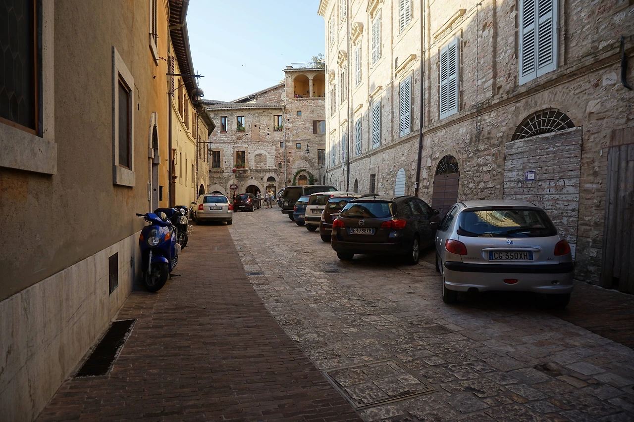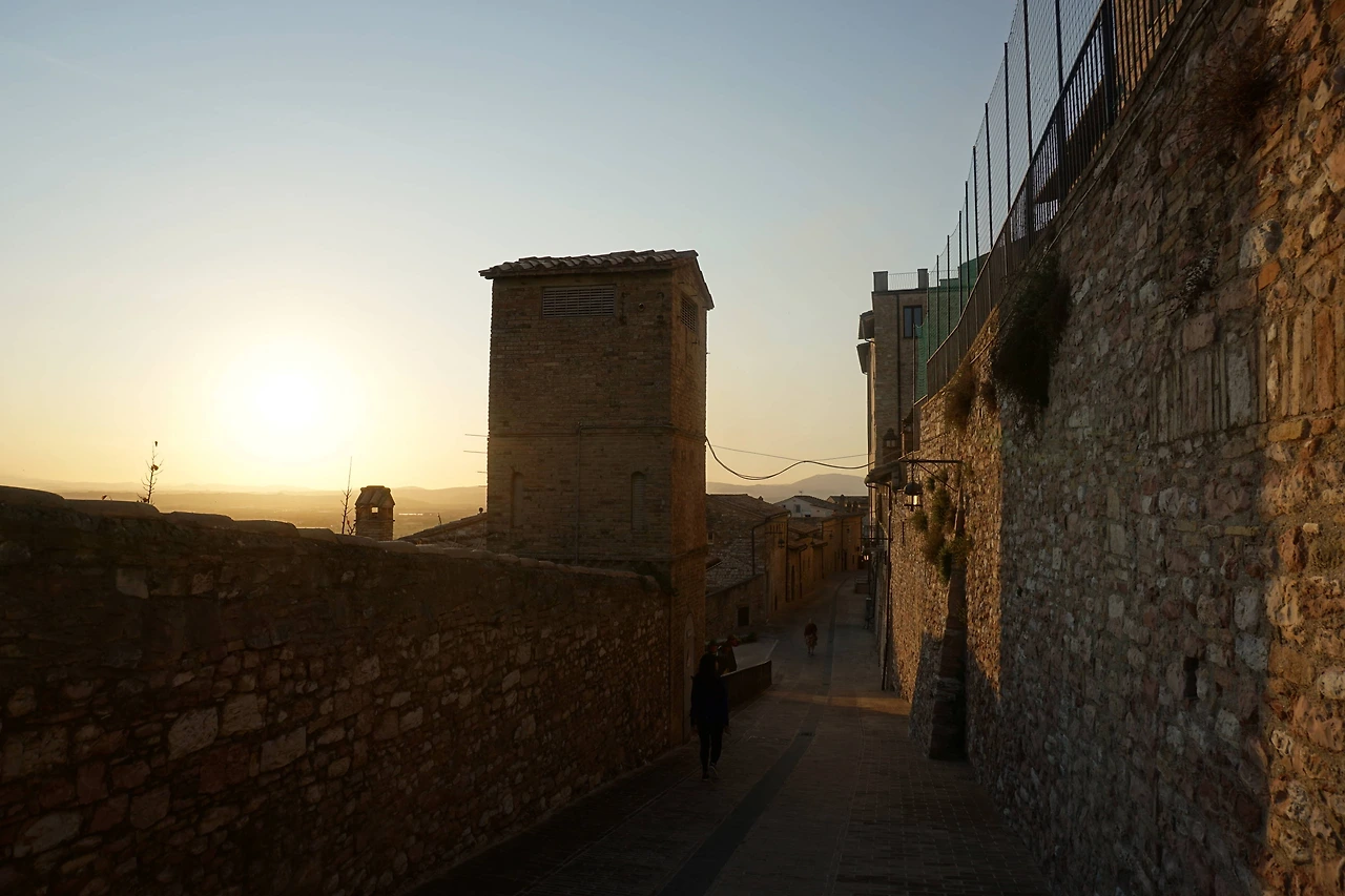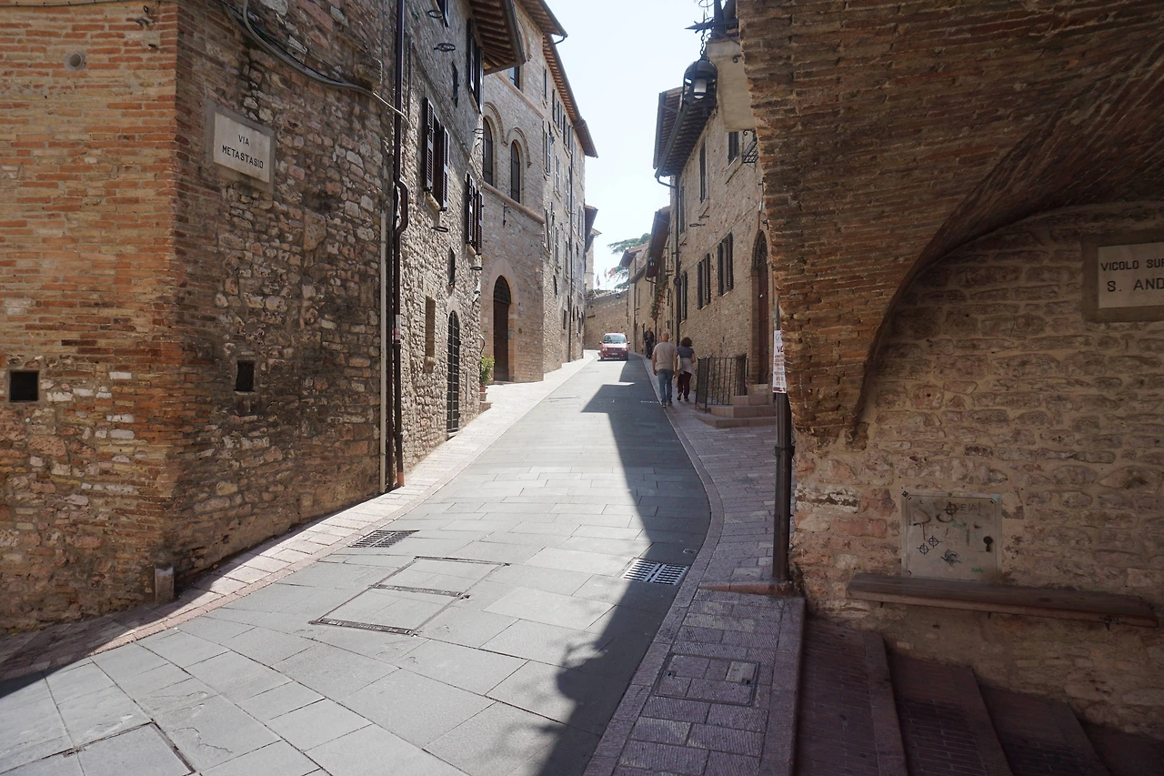 오르막의 경사는 차가 다닐 수 있는 정도다. 이 정도의 도로는 아시시에서도 꽤 넓은 편에 속한다. 성 프란치스코 성당에서 성문으로 이어진 길이어서 마차가 다닐 수 있어야 했기 때문이리라.