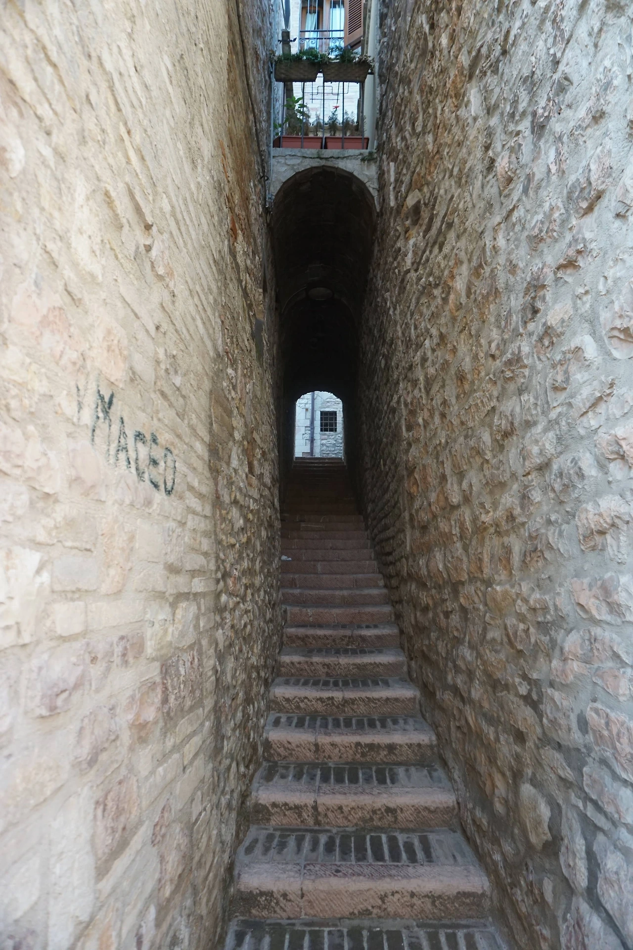 1층을 골목으로 내어준 것인지, 길 위에 집을 연결한 것인지 구분할 수 없는 이런 풍경은 아시시의 상징과도 같다. 1층 골목을 지나면 또다시 나오는 1층 골목, 길과 건물이 말 그대로 유기적이다.