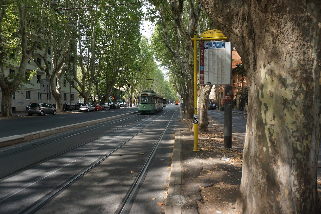 트램은 속도가 그리 빠르지 않다. 번잡한 도시를 운행하고 있기도 하고, 자동차와 길을 공유하고 있기 때문이기도 하다. 자동차의 입장에서는 트램과 길을 함께 쓰는 것은 굉장히 불편해 보인다. 로마의 길에서도 자동차는 사람과 트램을 동시에 신경 쓰며 다녀야 한다. 속도는 자연스럽게 줄어든다. 자동차가 다니기 좋게 길을 만들어 놓은 서울 길과 비교해 보라. 서울은 자동차가 많아서 속도가 줄어드는 경우가 아니면, 마음만 먹으면 제한속도를 무시하고라도 달릴 수는 있다. 도로를 자동차 중심으로 계획한 모습의 전형이다.