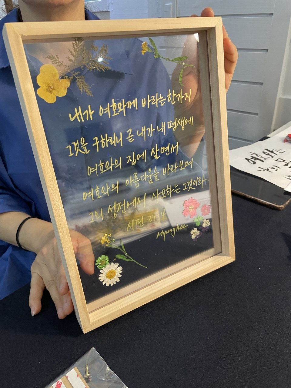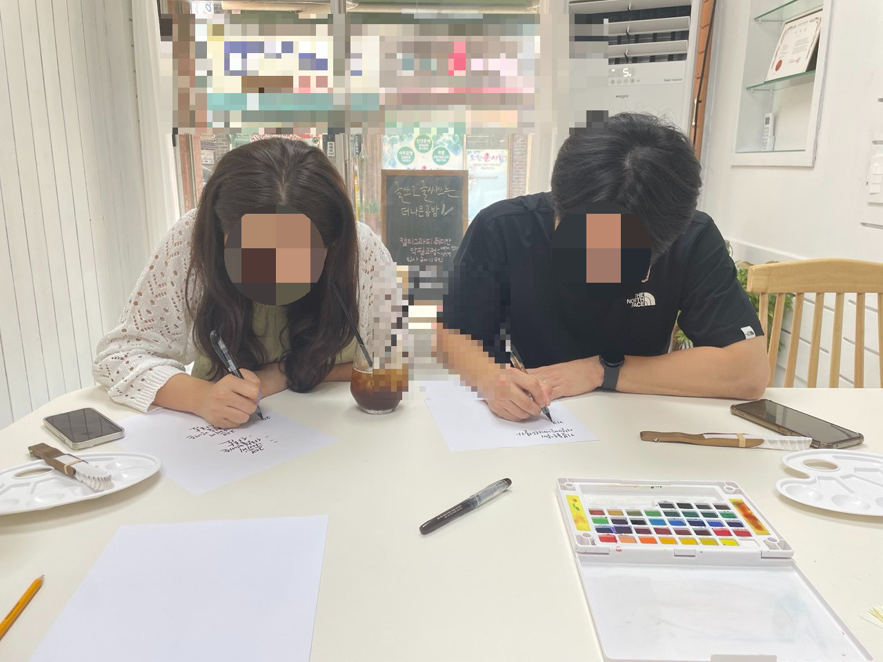 프로젝트 진행과 더나은공방은 거의 비슷하게 진행되었다. 나는 '글 쓰고 글씨 쓰다'라는 슬로건을 가지고 운영을 시작했다. 글쓰기, 캘리그래피, 글씨 교정까지 정말 다양한 수강생이 다녀가시면서 공방 운영도 순조롭게 진행되었다. 마케팅 관련 강의를 듣고 여러 가지 스킬을 적용하면서 실제로 많은 이익을 낸 달도 있었다. 뿐만 아니라 캘리그래피에 다양한 공예를 접목하면서 여러 가지 시도를 해보았다. 레진아트를 적용하기도 하고 풍선 캘리그래피로 보는 재미, 만드는 재미를 더하기도 했다. 물론, 처음 시도해 보는 자영업에 힘든 순간이 더 많았지만 나의 꿈이 온전히 담긴 공간이라는 것만으로 충분히 행복했다.