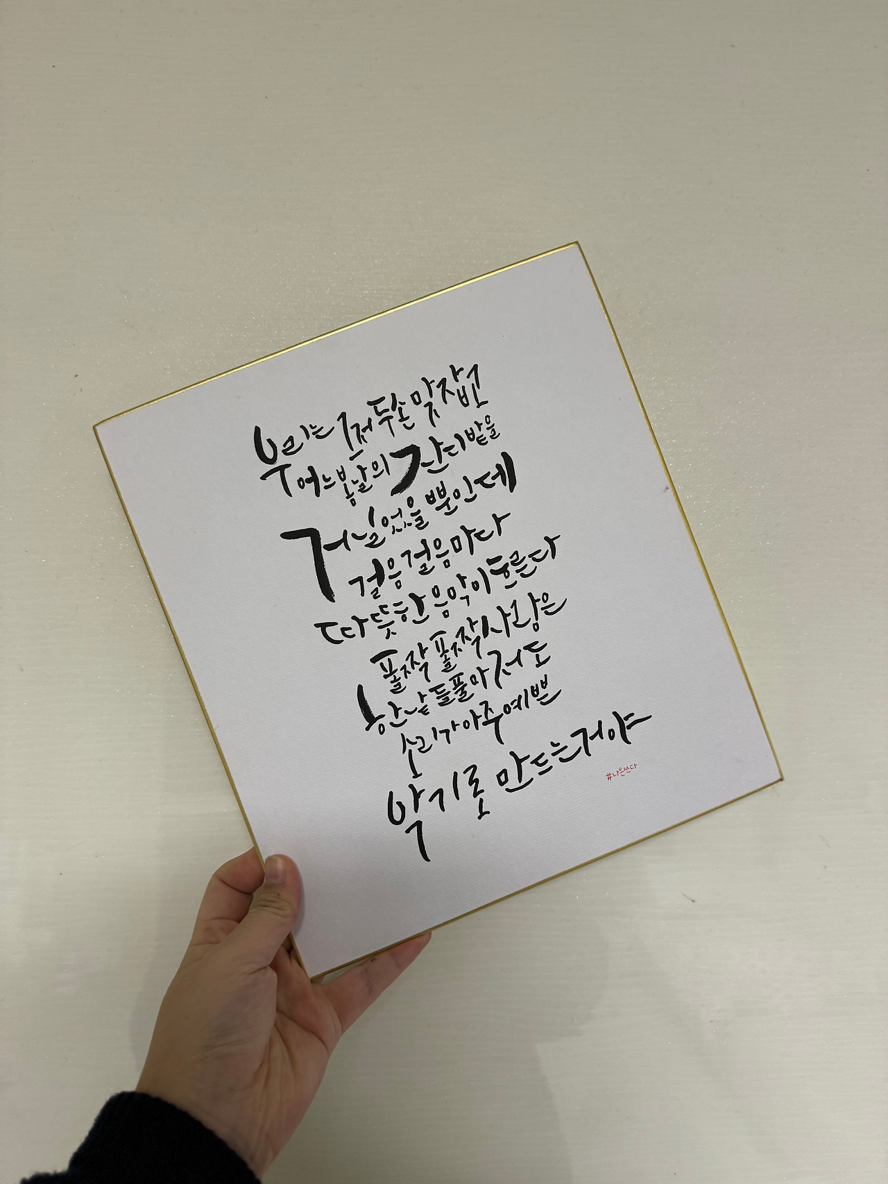 캘리그래피 공방을 열려고 생각하고 자격증을 따게 되었는지, 아니면 그냥 취미로 오랫동안 캘리그래피를 하다 보니 자격증을 따게 된 건지 순서는 기억나지 않는다. 어쨌든 이맘때쯤 몇 년간 취미로 배워왔던 캘리그래피 자격증을 땄고 비슷한 시기에 소상공인을 위한 프로젝트 하나에 참가 신청을 하게 되었다. 공방을 오픈하기 위함이었다. 당시 몸도 많이 안 좋은 상태였지만 꿈꿔왔던 공방을 열 수 있게 되었다고 생각하니 행복했다. 공방만 오픈한다면 지금 내가 고민하는 모든 게 해결될 거라고 생각했다. 그간 다녔던 캘리그래피 공방을 떠올리면서 당연히 나도 저렇게 사업장을 잘 유지할 수 있을 줄 알았다. 선생님들의 좋은 면만 보고 그 이면은 따져보지도 않았다. 꿈이 너무 커서 그 뒤에 숨겨진 단점을 보지 못했기 때문에 당시에는 누군가 나를 뜯어말렸다고 하더라도 듣지 못했을 정도였다.