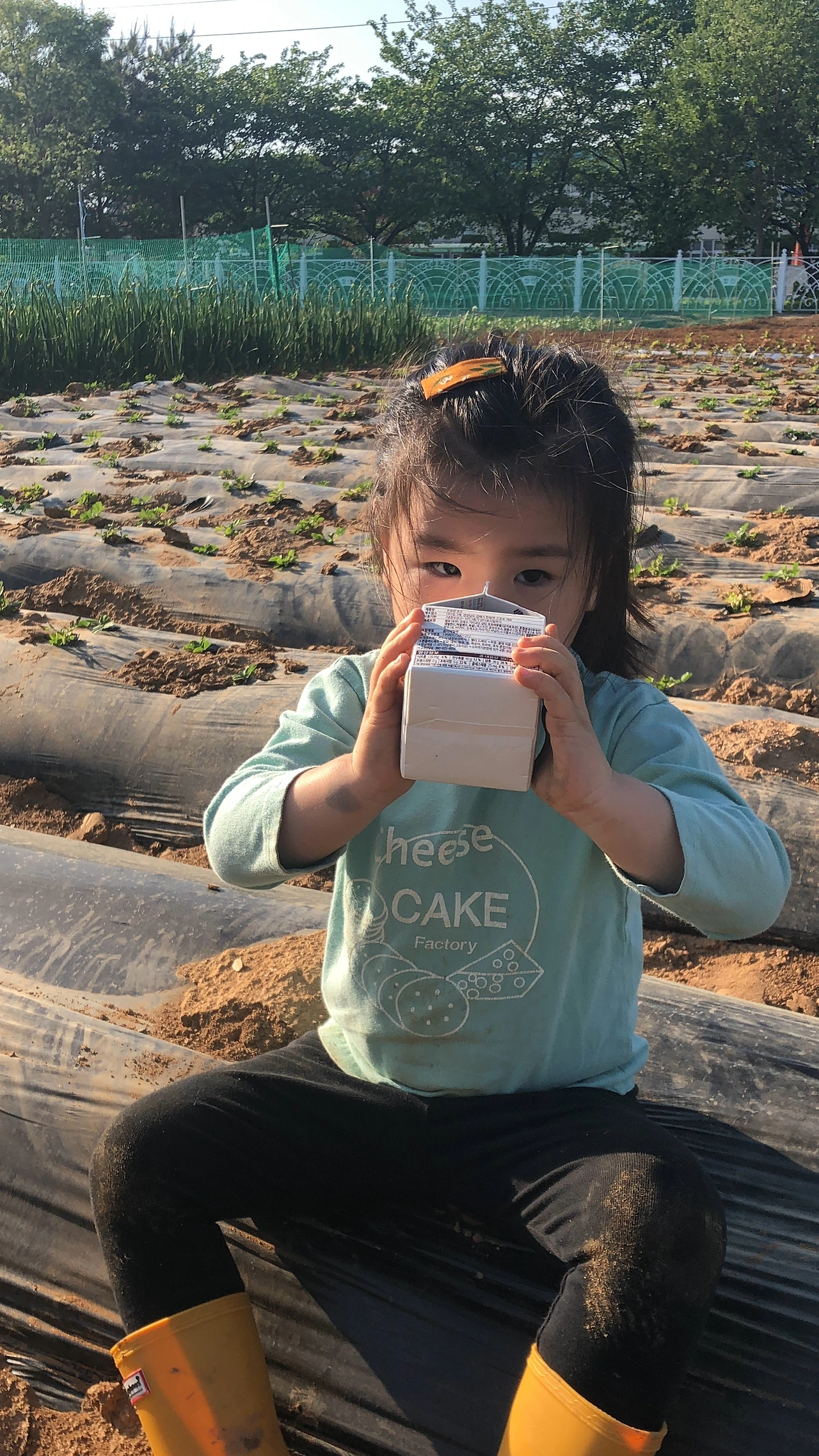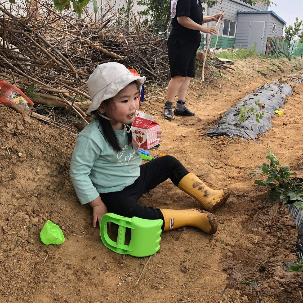 저와는 반대로, 딸아이는 열심히 밭일 후 마시는 시원한 우유의 맛을 벌써 알아버렸습니다. 밭일 후 힘들어서일까요? 땅이 지저분하든지 말든지 신경 쓰지 않고, 터럭 주저않아 순식간에 300mL우유를 꿀꺽합니다. 아마도 이 아이에게는 저 순간이 텃밭에서 최고의 순간이 아닐까요. 그래서 저는 밭에 갈 때면, 아이를 위해 꼭 우유 한 팩을 준비합니다. 이 아이의 오늘 최고의 순간을 잊지 않고 챙겨주고 싶어서요.
