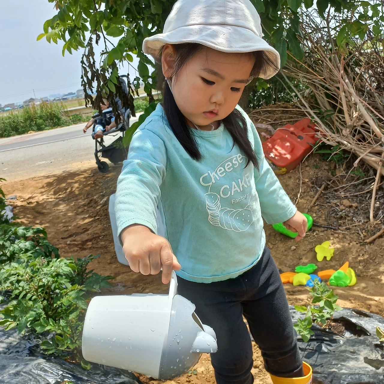 제 눈엔 텃밭을 놀잇감으로 경험하고 있는 첫째 아이가 마치 물 만난 물고기처럼 보입니다. 텃밭에 가자고 했을 때 단 한 번도 싫다고 한 적도 없을 뿐 아니라, 텃밭에 가면 뙤약볕 아래 지칠 만도 한데 쉬지 않고 움직이며 놀더군요. 엄마인 제가 걱정될 정도로 열정이 넘칩니다. 같은 피 아니랄까 봐, 저희 딸아이도 저와 같이 텃밭 체질임이 분명한 것 같네요. 어느새 비가 오는 날에 신는 노란 장화는 텃밭 전용화가 되었고, 아이는 모자를 쓰는 것에 익숙해져 가고 있습니다.