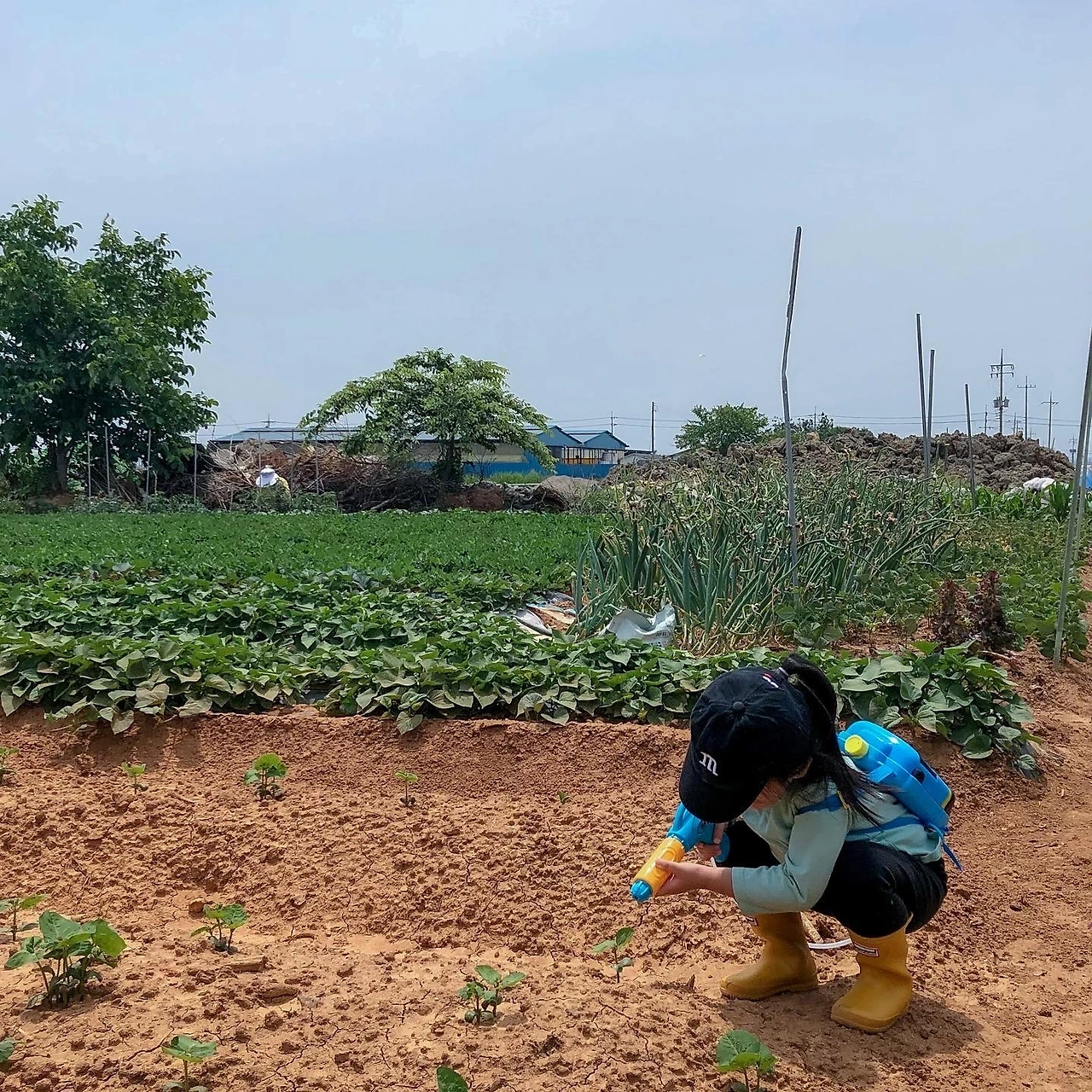 요즘같이 심각한 가뭄에는 텃밭에 물을 줘도 줘도 끝이 없습니다. 물을 주는데도 밭은 계속 말라만 가고, 제 마음처럼 쩍쩍 갈라지기 바쁩니다. 그런 엄마 마음이 아이에게 전해졌는지, 밭에 오면 아이가 가장 많은 시간을 보내는 활동이 '농작물에 물 주기'입니다. 사실 저 조그마한 물총과 물뿌리개로 주는 물은, 작물들에게 목을 축일 수 있는 물 한 모금 정도에 불과합니다. 하지만 아이가 온 정성을 다해서 준 물이라는 걸 작물들은 아는 걸까요? 가뭄임에도 아직 저희 텃밭 작물들은 큰 해 없이 잘 버텨주고 있습니다.