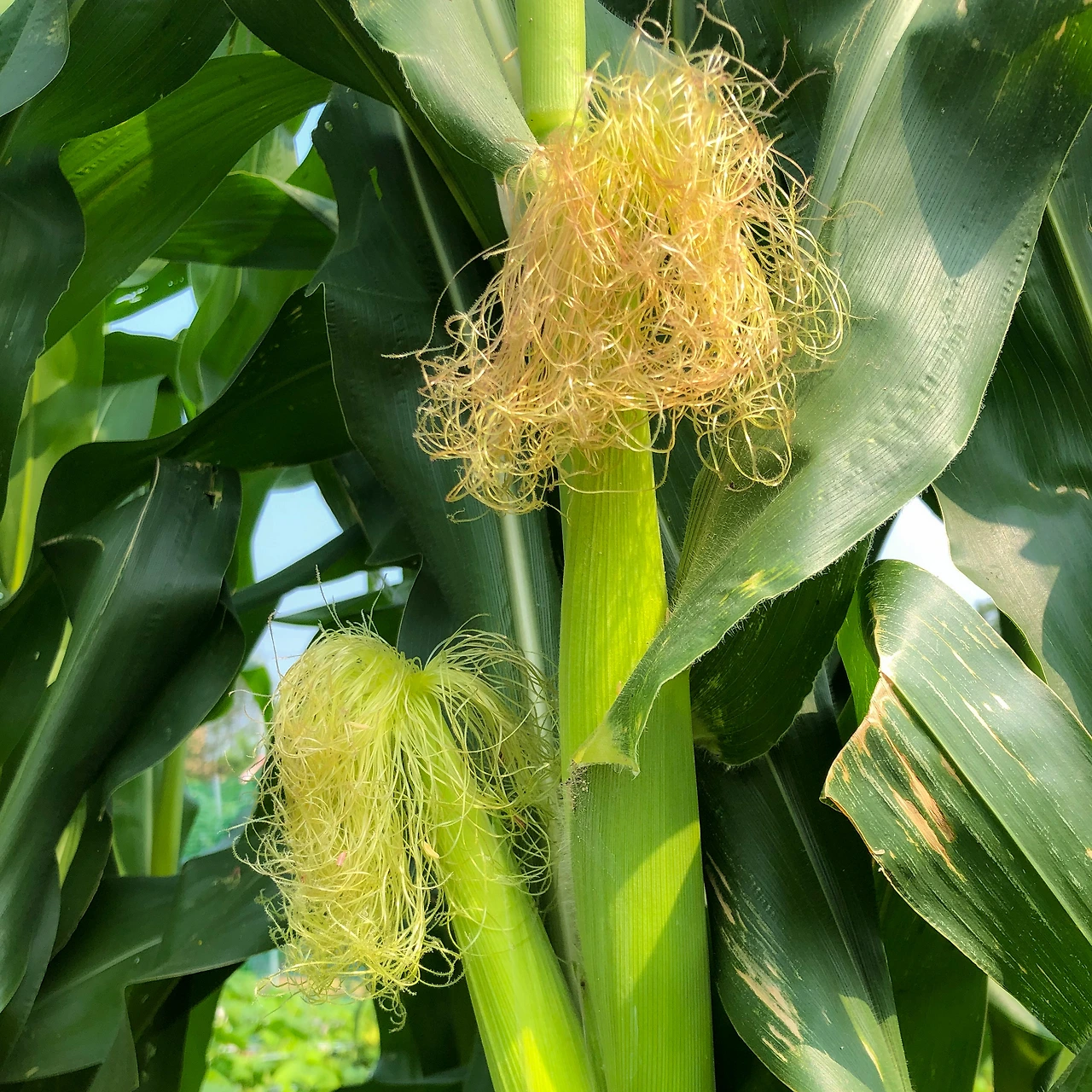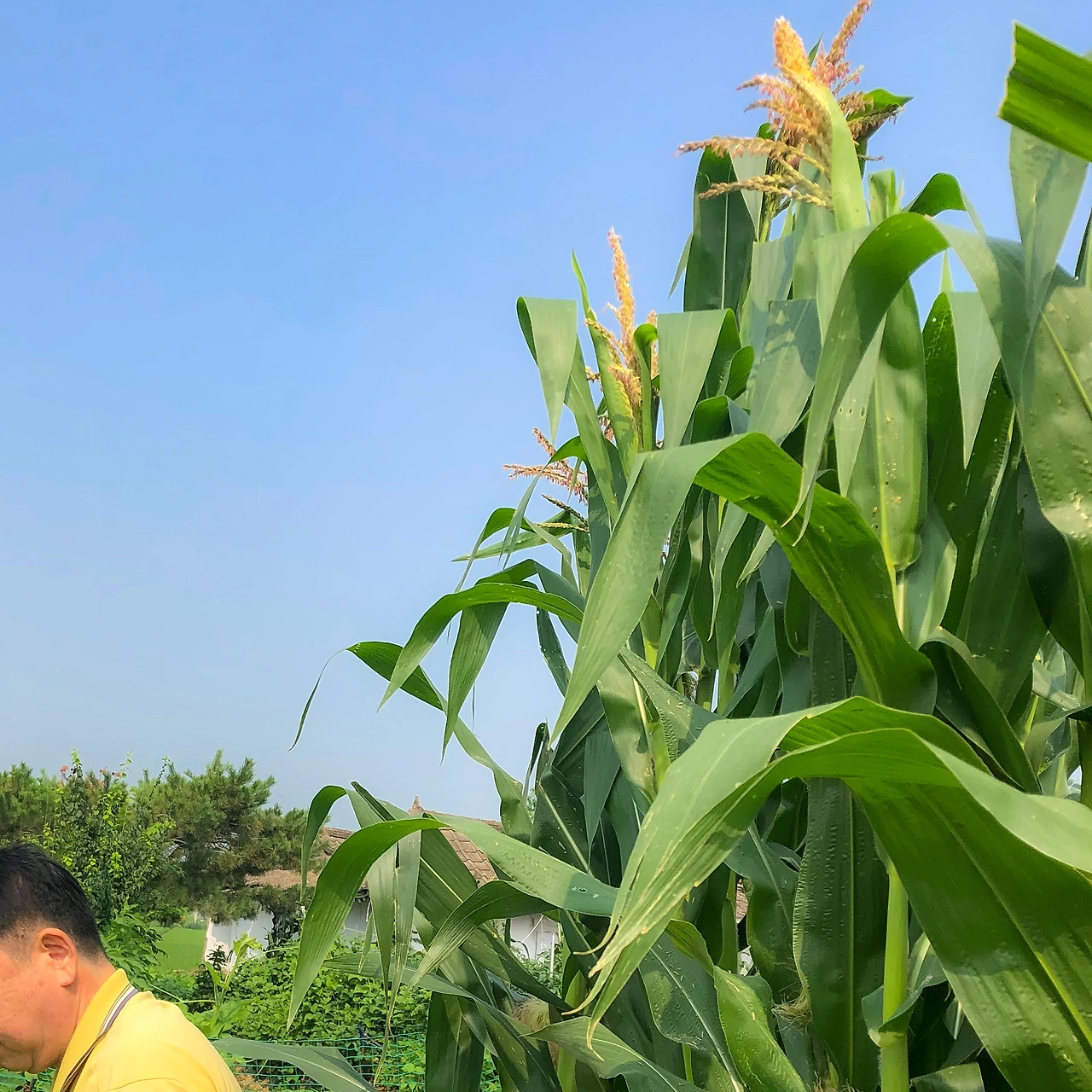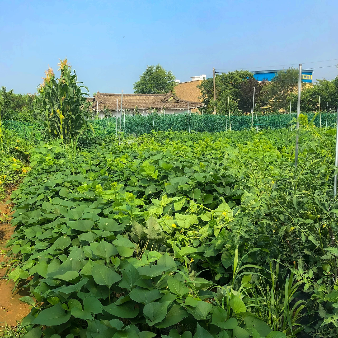 그 와중에 옥수수는 키가 2미터는 훌쩍 넘는 키다리의 모습에, 어느새 옥수수수염이 대롱대롱 달린 옥수수를 키워내고 있더군요. 밭을 점령하고 있는 이 세 가지 농작물 때문에, 조금씩 재미로 심었던 다른 농작물은 찾아보기도 힘들 정도로 밭은 엉망이 되어 버렸습니다. 처음에 심을 때는 이렇게나 크게 성장하리라고는 상상도 못 했기에, 이런 상황이 당황스러울 수밖에 없었죠.