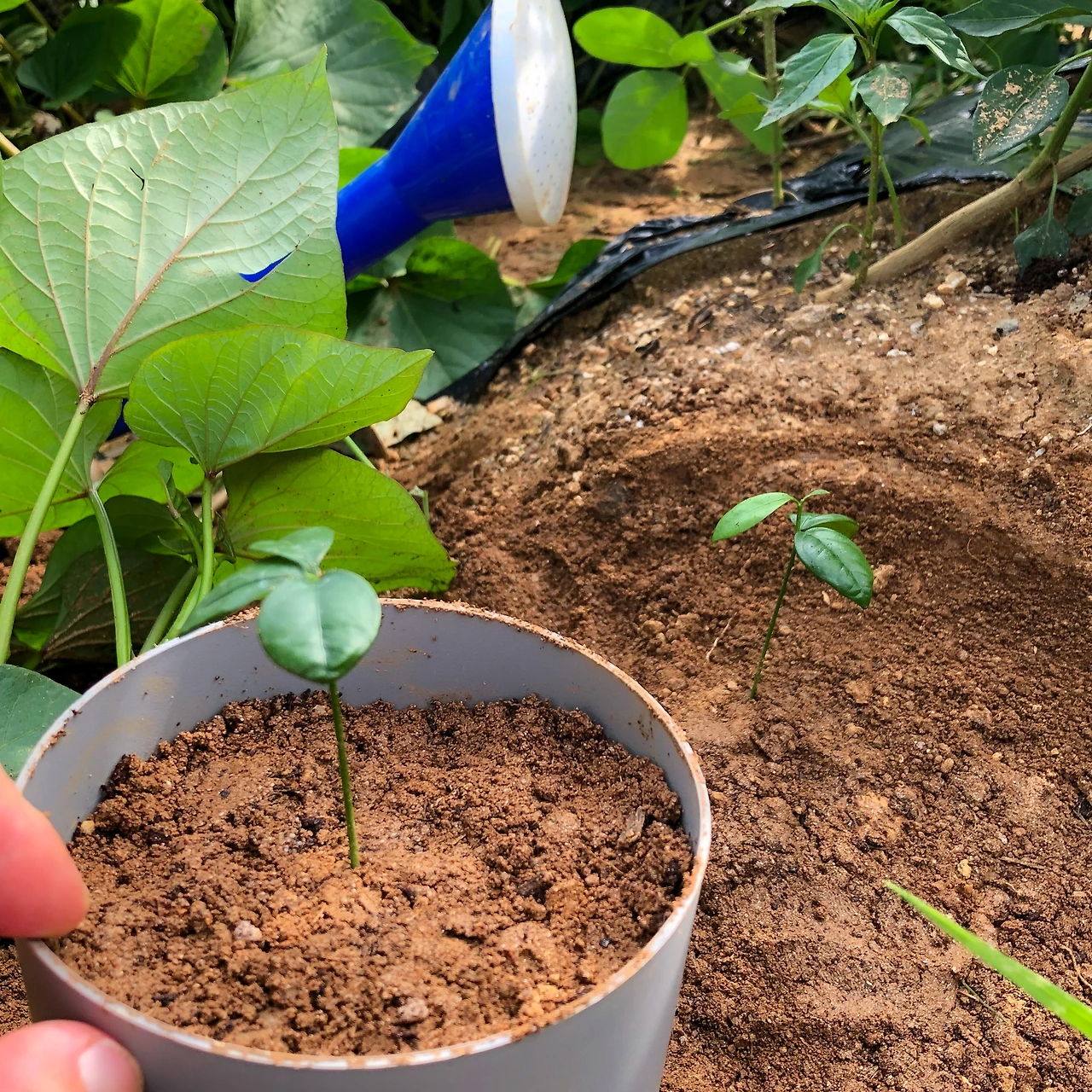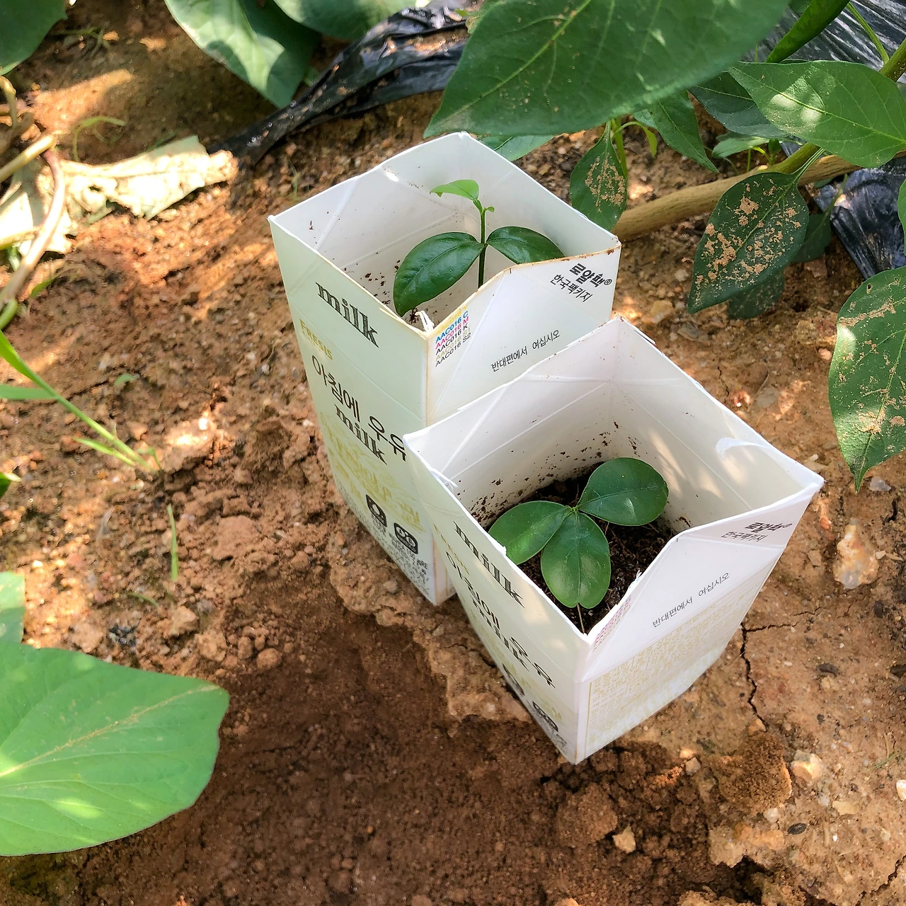 묘목 두 개를 어떻게 키울까 고민하다가 하나는 텃밭에, 하나는 집에서 키워보기로 했습니다. 같은 묘목이 다른 장소에서 어떻게 다르게 자라는지 비교해 보고 싶기도 했고, 한 군데 몰아서 키우다가 두 개를 동시에 잃으면 속상할 것도 같아서죠. 언니도 저도, 금귤이 부디 잘 잘 자서 하루빨리 나무 모양새를 뽐내기를 기대하고 있습니다.