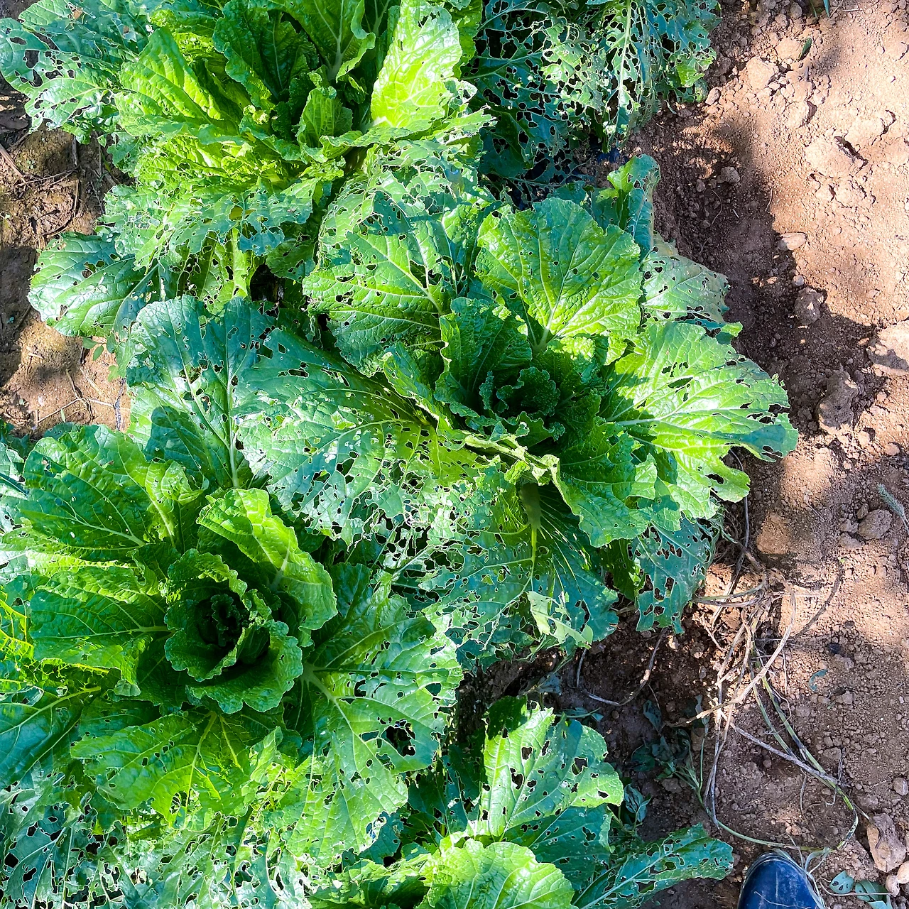 여름의 끝자락 저희 텃밭에 들인 새 식구는 바로 배추입니다. 가을 김장철에 유용하겠다 싶어서 가뜩이나 좁은 텃밭에 빼곡히 심었습니다. 배추는 하루가 다르게, 무서운 속도로 생장합니다. 문제는 배추잎의 크기는 쑥쑥 잘 크고 있지만, 무언가가 우리 배추를 갉아먹고 있다는 것입니다. 정체를 알 수 없는 무언가로부터 갉아먹혀가며 시름시름 아파하는 배추를 보니, 배추들의 아픔이 제게까지 전해지더군요. 나중에 내가 김장을 해서 먹을 배추잎인데, 내 식량을 먼저 먹어치워 버리는 이 존재는 무엇인가 고민에 빠졌죠. 모종을 갓 심었을 때는 텃밭으로 이사한 모종들이 적응하느라 힘들어서 그런 것이려니, 가볍게 넘겼습니다. 하지만 점점 정도가 심해지는 이 상황을 속수무책을 지켜보고만 있을 수는 없더군요.