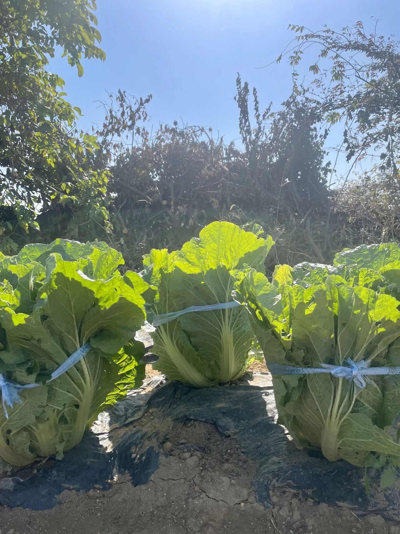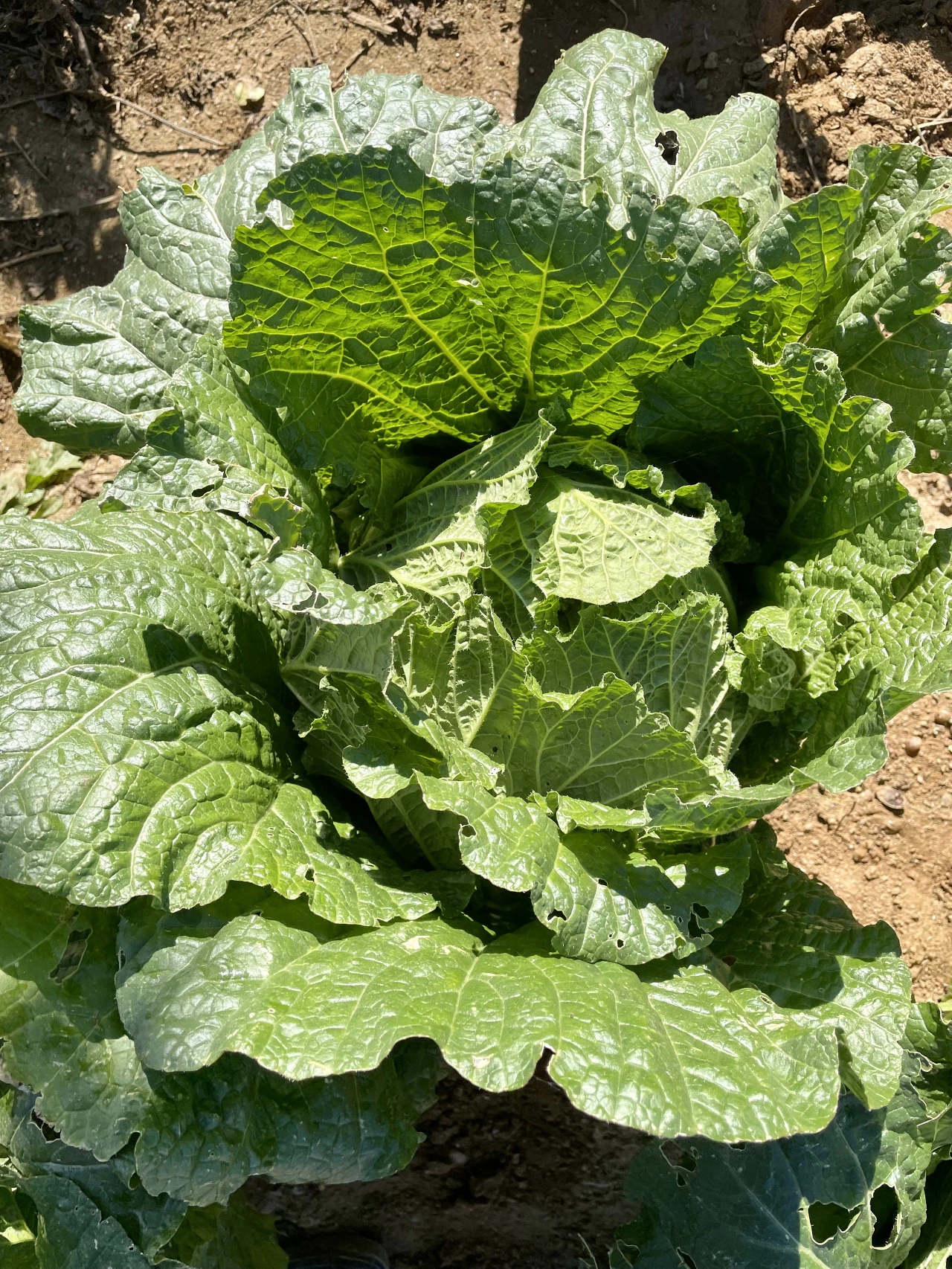 엄마의 말에 따르면 속이 꽉 차면 손으로 배추 가운데를 눌러봤을 때 딱딱하다고 합니다. 말 그대로 배춧속이 알차게 여물었냐의 의미인데, 눌러보면서 테스트를 해볼 수 있다고 하더군요. 마치 장미꽃처럼 피어오르는 배추의 가운데 봉우리 모양 부분을 눌러서 확인해 볼 수 있는 거죠. 그리고 눈으로 봤을 때 가운데 배추 속으로 빈 공간이 보이면 안 된다고 합니다. 그런 의미에서 저희 배추는 아직 속이 차고 있는 중이고, 11월 말쯤 수확할 때 되어야 속이 차지 않을까 싶습니다.