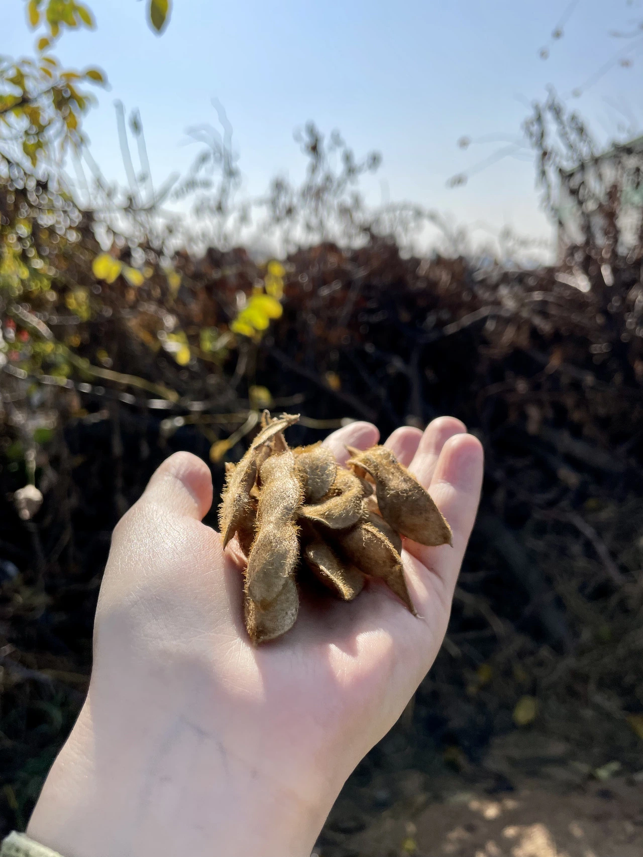 우선 1차 작업으로 콩줄기에서 콩깍지를 떼어내는 작업을 텃밭에서 하기로 했습니다. 2차로 집으로 콩깍지를 가져가서, 대망의 '콩깍지 까기'를 할 계획입니다. 서리태 콩은 이름에서도 눈치챌 수 있듯이, 서리를 맞고 수확을 하는 콩입니다. 그래서 이렇게 추운 계절에 수확을 하죠. 비록 제게 존재감은 콩만 했지만, 서리태는 초겨울까지 견뎌내는 강한 친구임은 틀림이 없습니다. 추운 겨울을 이겨내야 해서일까요? 수확을 하기 위해 자리 잡고 앉아서 자세히 들여다본 서리태는 털로 뒤덮인 콩깍지 이불을 덮고 있었습니다. 소위 우리가 말하는 극세사 이불로 단단히 무장한 듯했죠. 이렇게 준비성도 철저한 녀석을 돌봐주지 않았다니, 수확 내내 서리태콩에게 미안한 마음을 씻어낼 수 없었습니다.