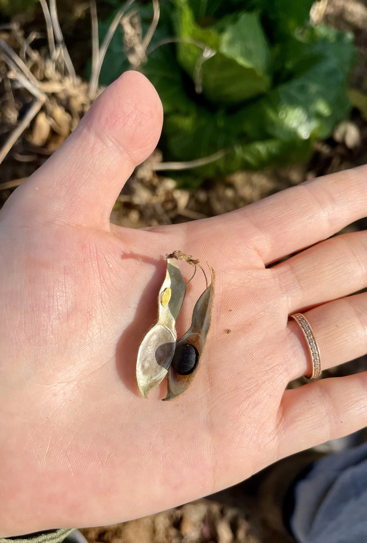 그런데 이 녀석, 제가 신경 써주지도 못한 지난 몇 개월 동안 혼자서 꾸준히 자라고 있었나 봅니다. 가끔씩 지나가면서 관심을 좀 흘려주면 '나 아직 살아있어' 티 정도나 내던 서리태 녀석이, 서리태 콩 결실까지 잘 맺어서 수확이 가능할 만큼 큰 거죠. 저는 수확도 하지 않고 텃밭에 비료나 되게 버려야 하나 콩을 업신여겨왔는데, 그걸 친구 어머니께서 친히 찾아서 수확하도록 알려주신 겁니다. 이 추운 겨울까지 끈질기게 자란 서리태 녀석도 기특하지만, 그 콩을 눈여겨보시고 챙겨주신 친구 어머니께도 참 감사합니다.