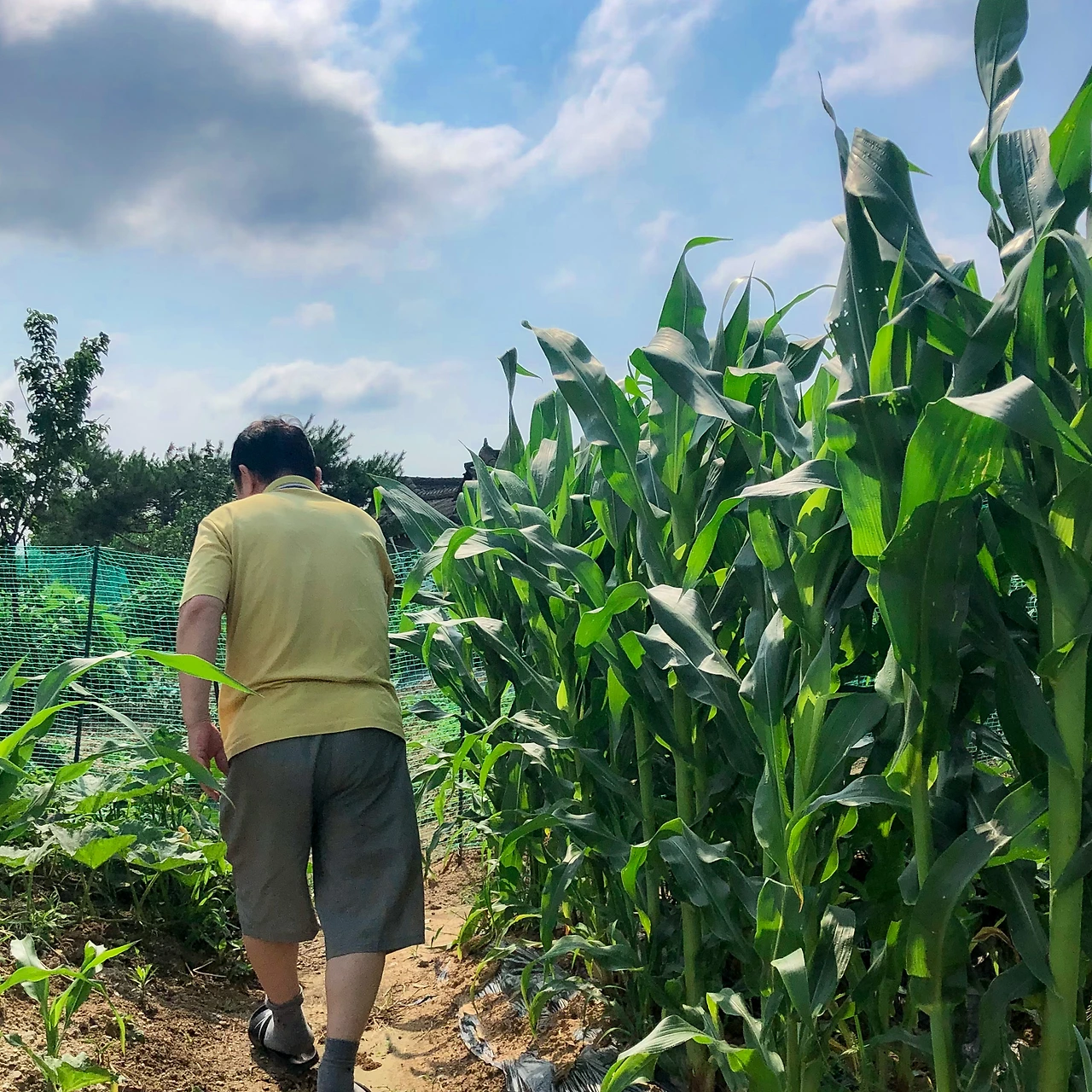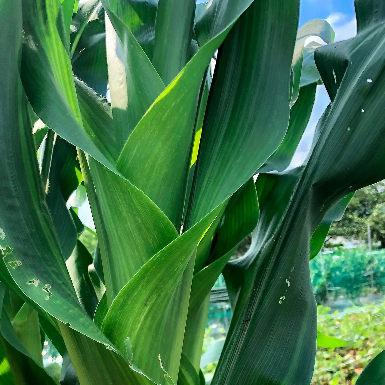 옥수수 작가님은 어디 가든 단연 독보적으로 눈에 띕니다. 어떤 농작물도 범접할 수 없는 기럭지를 뽐내기 때문이죠. 웬만한 성인 남자는 위에서 내려다볼 수 있을 정도의 키부심을 자랑합니다.