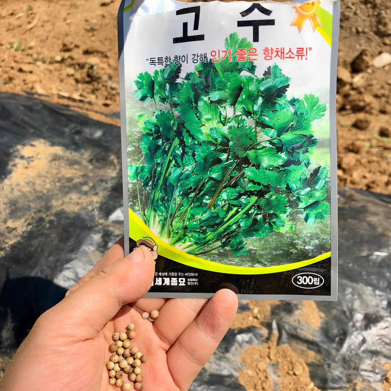 가끔씩 해 먹는 우리 집 쌀국수에도 고수를 올려먹고 싶다는 원초적인 본능에서 시작되어, 고수를 우리 텃밭에까지 심게 되었다. 생각을 실행으로 바로 옮겨, 고수 씨앗을 인터넷으로 구매하여 지난 5월 텃밭에 뿌렸다. 고수 씨앗은 씨앗이라고 보기 어려울 정도의 이상한 동그란 물체였다. 안은 텅 빈 듯 가벼워서 바람에 쉽사리 날아갈 듯 가녀렸다. 잘 자라겠지라는 가벼운 마음으로 씨를 밭에 흝뿌렸고, 내 예상과는 다르게 한동안 고수는 싹을 틔우지 않았다.