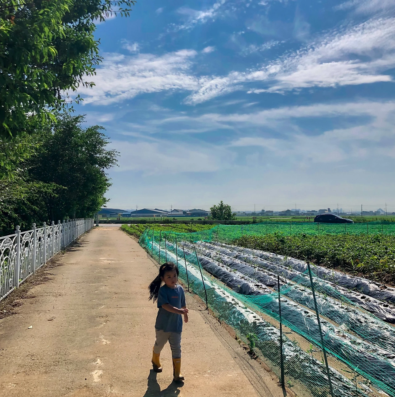 어김없이 주말은 찾아왔고, 저는 딸아이와 수분을 보충하기 위한 물과 우유, 그리고 밭에 갈 때마다 들고 가는 텃밭 준비물을 가지고 텃밭으로 향했습니다. 전날에는 비가 오지 않았지만, 일주일 동안 거의 쉬지 않고 내린 비 덕분에 분명히 텃밭 작물들은 눈에 띄게 많이 컸을 것이 분명했습니다. 그래서 텃밭으로 향하는 길은 마치 생일 선물을 풀기 전처럼 설레었죠. 역시나 도착하고 멀리서 본 텃밭의 느낌은 '초록' 그 자체였습니다. 비가 와서 일주일 만에 온 제게 옥수수는 급성장한 키를 뽐내었고, 얼마 전 가지치기를 해준 참외는 그사이 추가로 폭풍 성장하며 옆 고랑에 있는 이웃 식물들 위로 뻗어나가고 있었습니다.