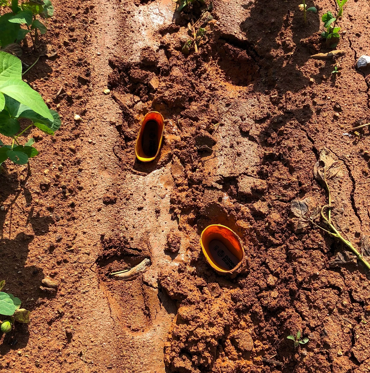 예상치 않게, 텃밭에 장화를 심었습니다.