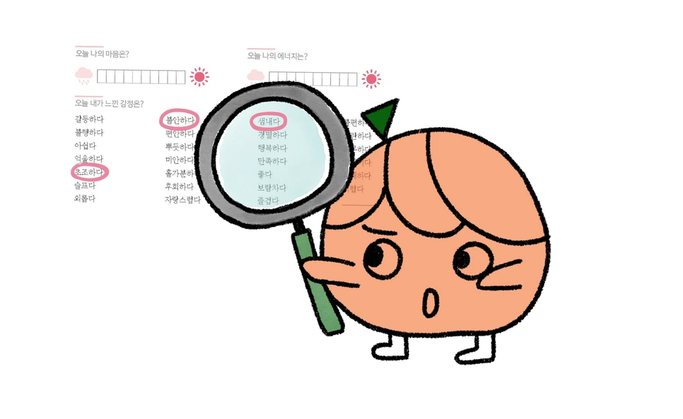 그래서 전문가들은 흔히 감정노트를 권해요. 감정은 눈에 보이지 않기 때문에, 눈에 보이게 바라보는게 필요하죠.