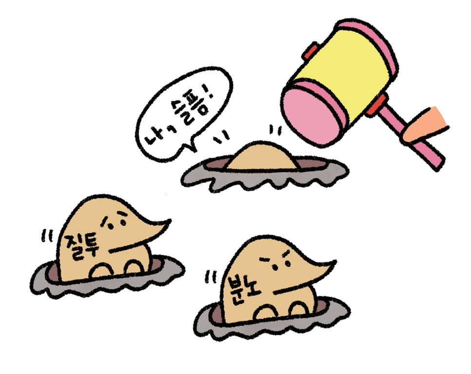 감정이 나오지 못하게 눌러서 없앨 수만 있다면 너무너무 좋겠지만 감정은 그렇게 만만한 녀석이 아니거든요.
