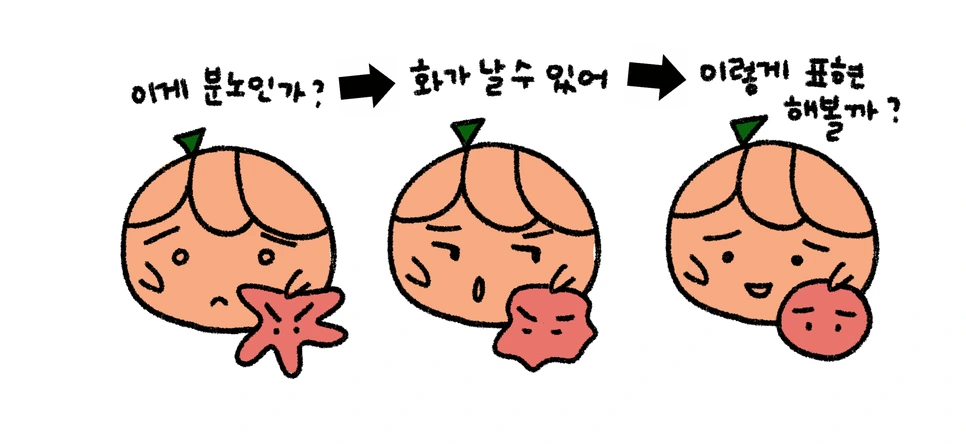 감정은 계속 호시탐탐 기회를 노려요. 언젠가 나가야지 하면서요. 그러다보니 결국 제대로 나가야할 때 나가지 않고 이상한 타이밍에 나가게 돼요. 별로 화를 내지 않아도 되는 상황에서 갑자기 버튼이 똬악! 눌리거나, 아니면 만만한 상대를 만났을 때 튀어나가고 말죠.