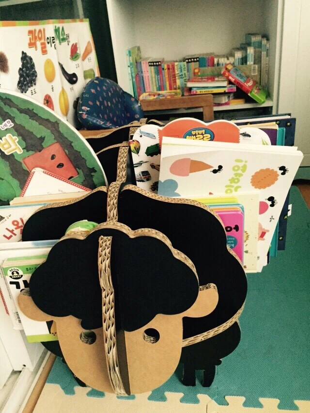 아이들은 눈에 잘 띄는 책만 읽거든요. 그래서 메인책장 말고 작은 이동식 책꽂이나 오픈형 책꽂이에 자주 읽는 책을 꽂아주시거나 자주 몇권씩 교체해 주시면 좋아요^^