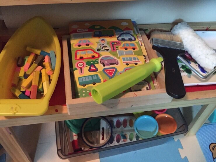 제 아이도 아래칸에 있는 장난감만 가지고 놀고, 앞에는 책만 보고, 위에 있는 색깔만 쓰고 그러더라구요. 또 손이 잘 안가는 곳에 있는 장난감은 확실히 덜 가지고 놀구요.. 가끔씩 아이가 노는 것을 관찰하면서 높낮이 등의 위치를 바꾸어주고, 필요없는 장난감은 정리도 해주면 아이가 놀이를 더 풍성하게 만들어가는데 도움을 줄 수 있는 것 같아요.