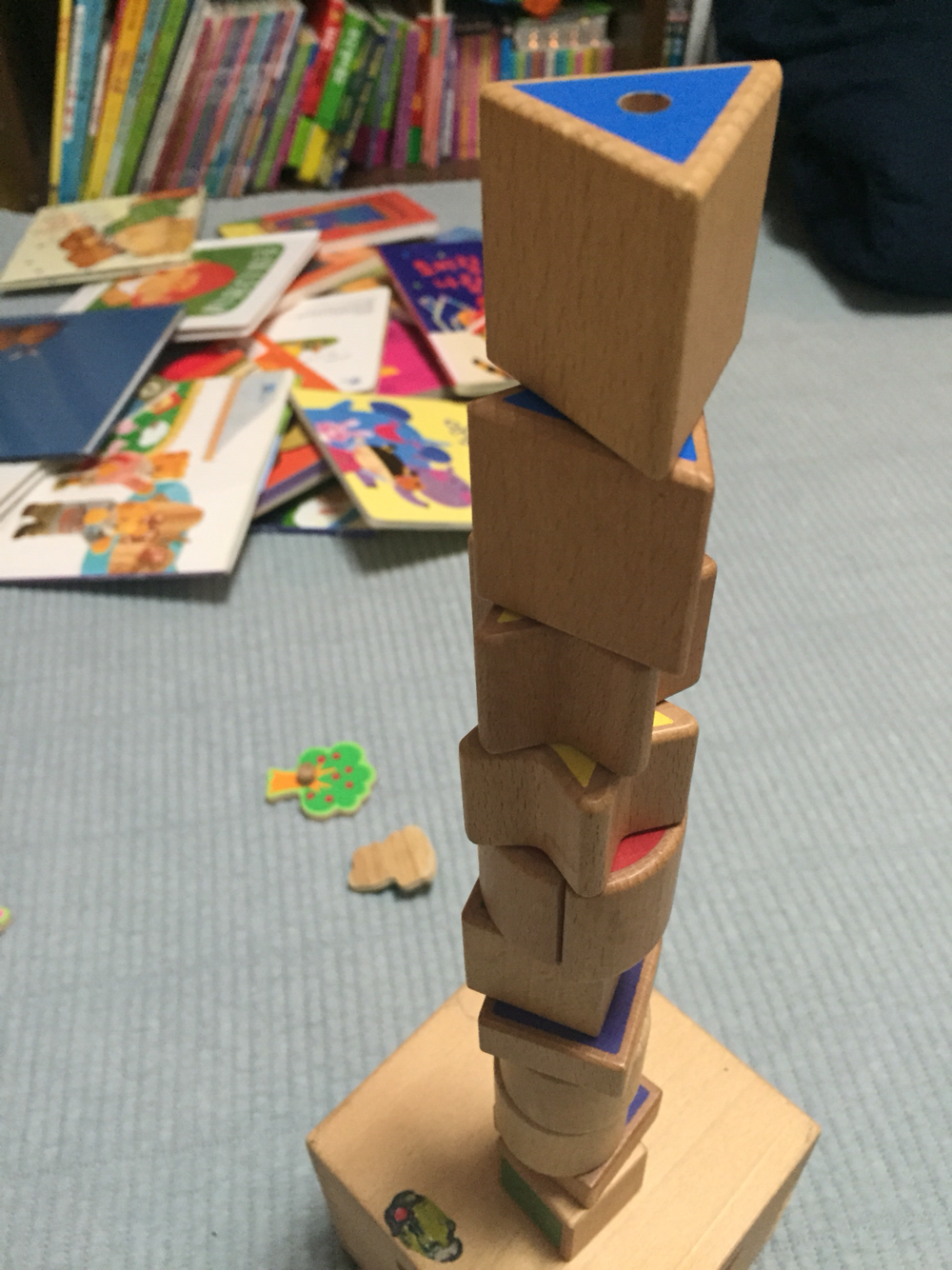 통안에 모양을 맞추어 넣기 보다는,쌓아올리고 발로 뻥 차는 것이 민후의 놀이방식. 꼭 모양을 제대로 맞추어 넣으라고 이야기하지 않아도 되요. 어떻게든 아이의 방식으로 놀게 하고 거기에 함께해 주세요.