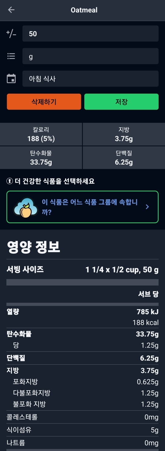 그래서 공식처럼 무엇을 얼마나 딱 먹으라고 정해줄 수는 없습니다. 그렇기 때문에 내 몸은 내가 가장 잘 알고 있어야 하는데, 이 때 다이어트 식단 기록하는 앱을 활용하면 구체적인 전체 섭취 칼로리와 영양성분별 섭취량 데이터를 얻을 수 있습니다. 앱에 내가 먹은 음식을 기록하면 각 음식별 열량(Kcal), 영양성분이 정확하게 나와있어서 내가 입력만 매일 꾸준히 한다면 영양성분별 하루 섭취량, 주간섭취량을 정확하게 알 수 있어서 식단 계획을 짜기 정말 좋습니다.