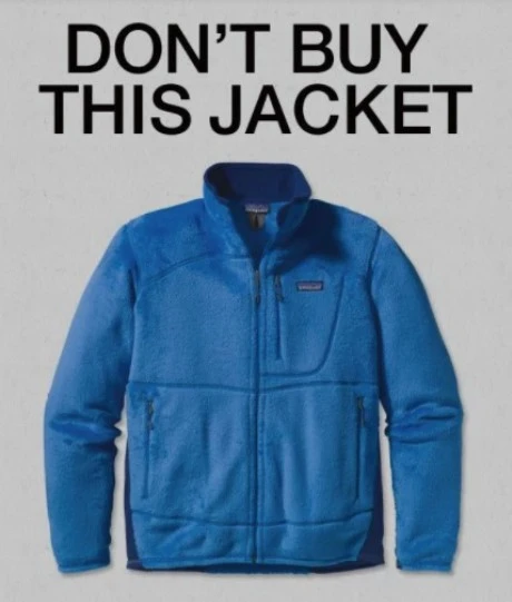 파타고니아의 창업가 이나본쉬드는 지리산 정상 천왕봉에 가면 절망할 것이다. 사지 말래도 기어코 파타고니아의 신상 플리츠를 사입은 산악인이 즐비한 곳. 파타고니아의 '환경 보호를 위해 파타고니아 옷을 사지 마세요'의 카피라이팅과 환경철학에 소비자는 감동하고, 오히려 불필요한 소비도 정당화해가며 기어이 플리츠를 장만한다. 겨울 신상 플리츠는 진작에 가을부터 매진이다. 이나본쉬드가 한국의 산 정상에서 형형색색의 파타고니아를 입은 사람을 보면 어떤 마음일까.