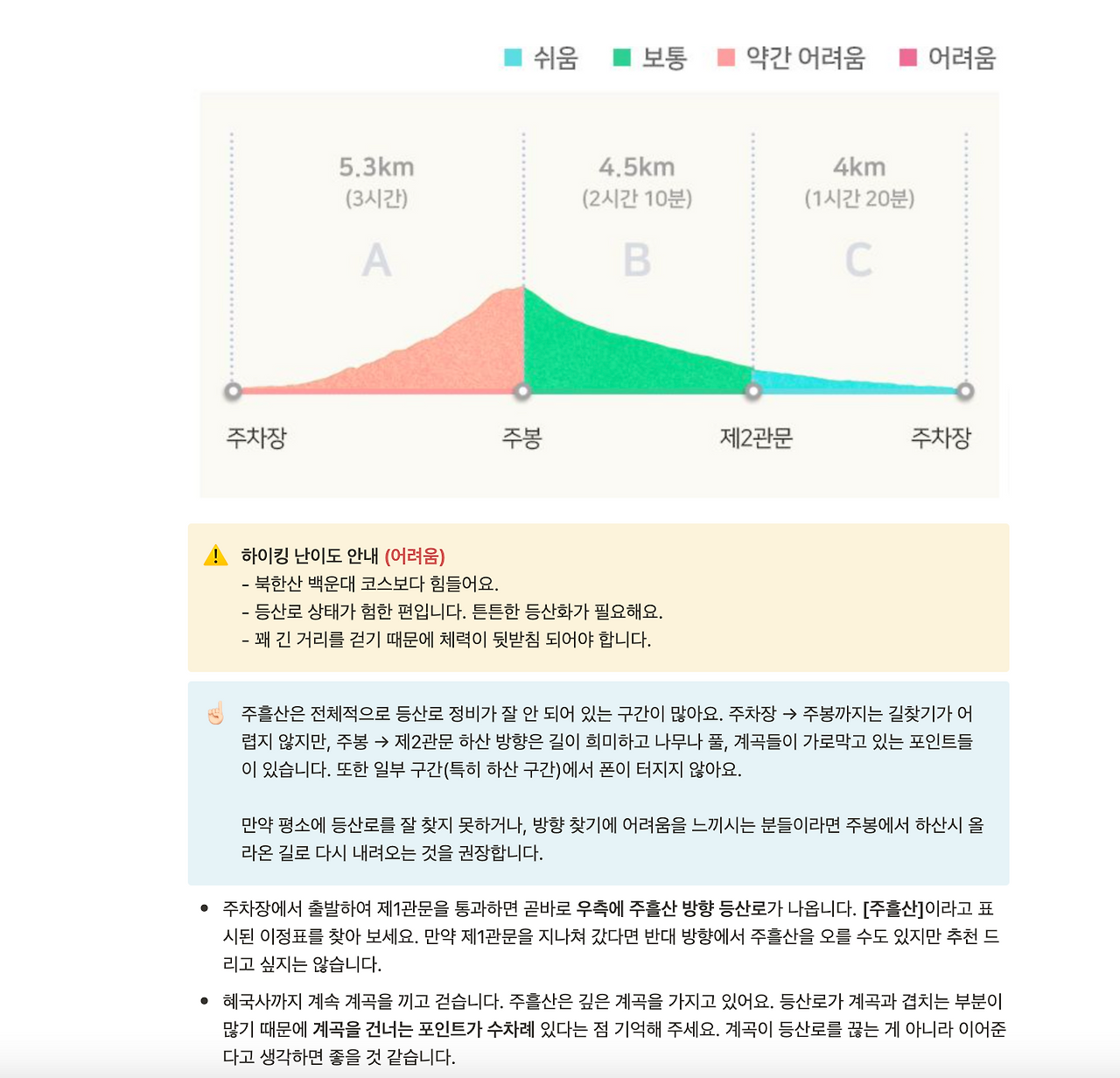 - 그래도 도마뱀과 맷돼지라니요. 게다가 힘든 와중에 낯선 길을 찾아야 하다니. 역시 등산은 처음인 사람들에겐 두렵겠어요. 특히나 요즘은 안전과 편안함을 추구하는 시대잖아요.
