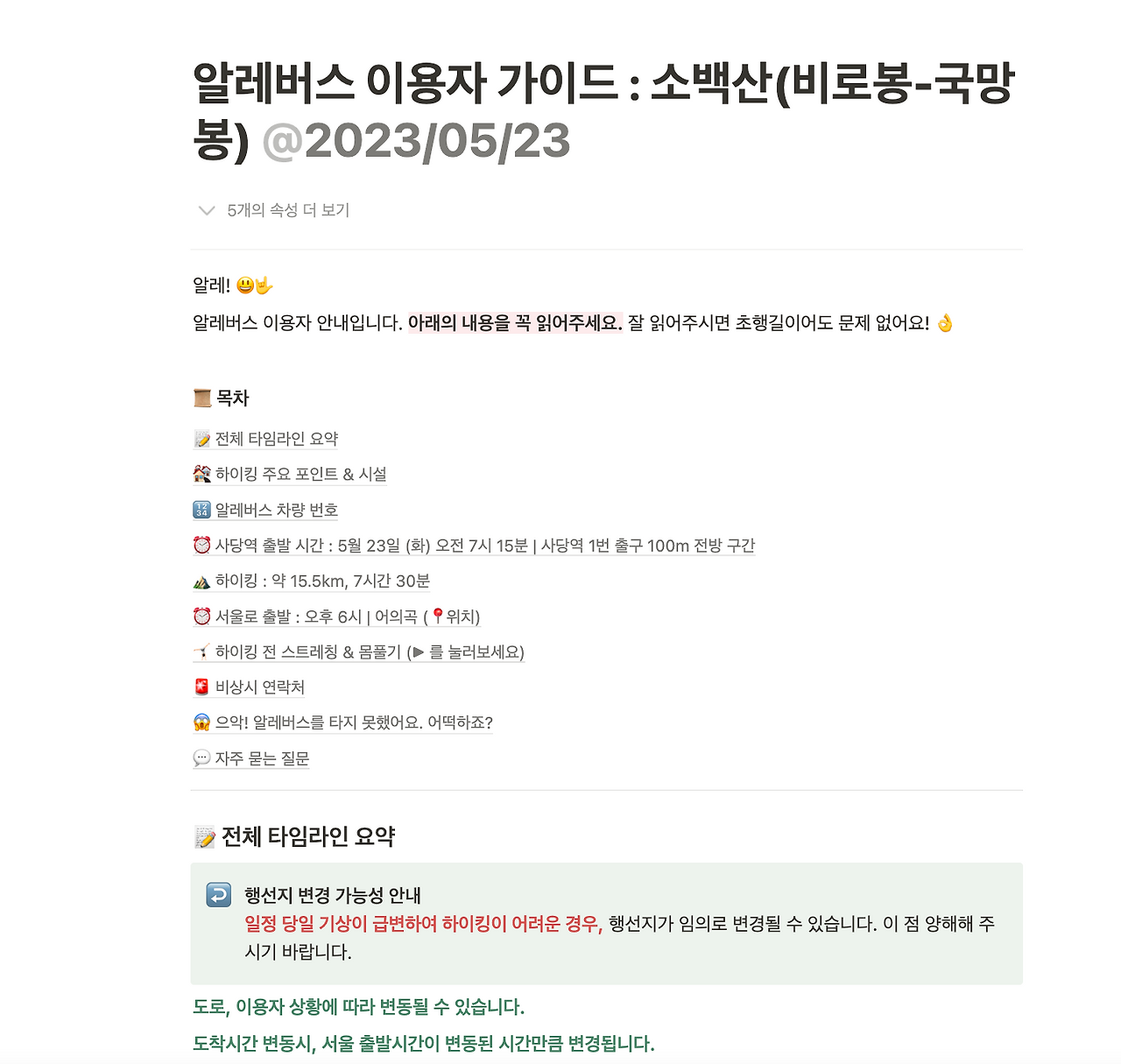 근데도, 등산과 글쓰기를 멈출 수가 없었다. 부모는 지금이라도 유학가라고 아님 연애라도 하라고 했고, 나도 머리론 정말 그러고 싶은데 그게 안 돼 미칠 거 같았다. 근데 다니엘이 만든 알레 서비스가 나에게 큰 위안이 됐다. 정확히는 그 서비스를 채우는 글자가 위안이 됐다. 처음 알레 사이트에 들어가고, 사용자 가이드를 받았던 날, 햇병아리 등산인 시절, 다니엘의 노션 기록을 꼼꼼히 읽으며 등산을 계획하던 내 모습이 데자뷔처럼 살아났다.