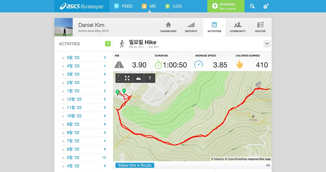 무슨 변화를 이뤄냈는지는 운동의 홍보,마케팅에 중요한 역할을 한다. 헬스장 전단지에 체지방 감소, 최대 몇 칼로리 소모는 문구는 귀여운 수준이다. 다이어트를 하고, 성형수술을 하면 팔자가 달라진다는 말을 쉽게 들을 수 있는 시대다. 하지만 다니엘은 13년 동안 등산 했지만 그대로라고 했다. 등산 서비스 운영자라면 없는 효과라도 마구 지어내서 말해야하는거 아닌가. 사실 글을 써야 하는 입장에서도 당황했다. 글 또한 극적인 변화가 있어야 재밌기 때문이다. 하지만 사실 내가 다니엘이 좋았던 또 다른 이유는 한결같았기 때문이다. 7년 전 처음 읽은 다니엘의 글에 담긴 산에 대한 태도와 생각은 그대로다. 알레서비스를 이용하고, 인스타그램 콘텐츠를 읽으면 알 수 있다. 심지어 그때 입었던 등산복, 등산가방, 모자도 똑같은거 같다. 맞다! 산도 한결 같아서 좋다.
