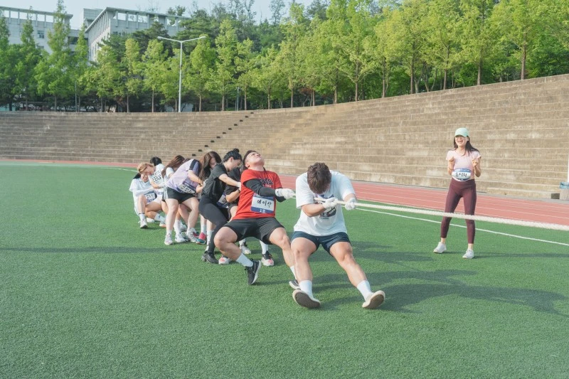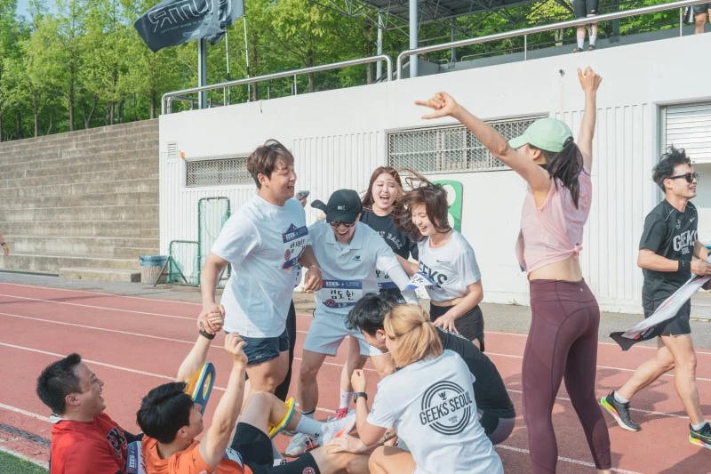 처음엔 러닝크루에 '러닝'을 하러 간 게 아니라 '헬스장 친구'들 보러 간 거라 소속감은 없었어. 사람 많은데 기 빨려서 뒤풀이는 안 갔고. 그런데 작년 5월 체육대회를 하면서 어른들이 건강하고 순수하게 노는 게 신선하더라고. 서로 모르는 다 큰 어른들이 100명이 줄다리기 하나에 목숨 건 듯 열심히 하고, 처음 본 사람과 2인 3각 경기를 하며 영차영차 걷고. 어른들이 드넓은 운동장에서 굵은 끈 몇 개로 치러진 게임에 하루종일 웃고 소리 지르고, 진심으로 뛰는 거 보니깐 어릴 적 가을 운동회가 생각났어. ‘어른이 돼도 순수하게 놀 수 있구나’라는 생각이 들었어.