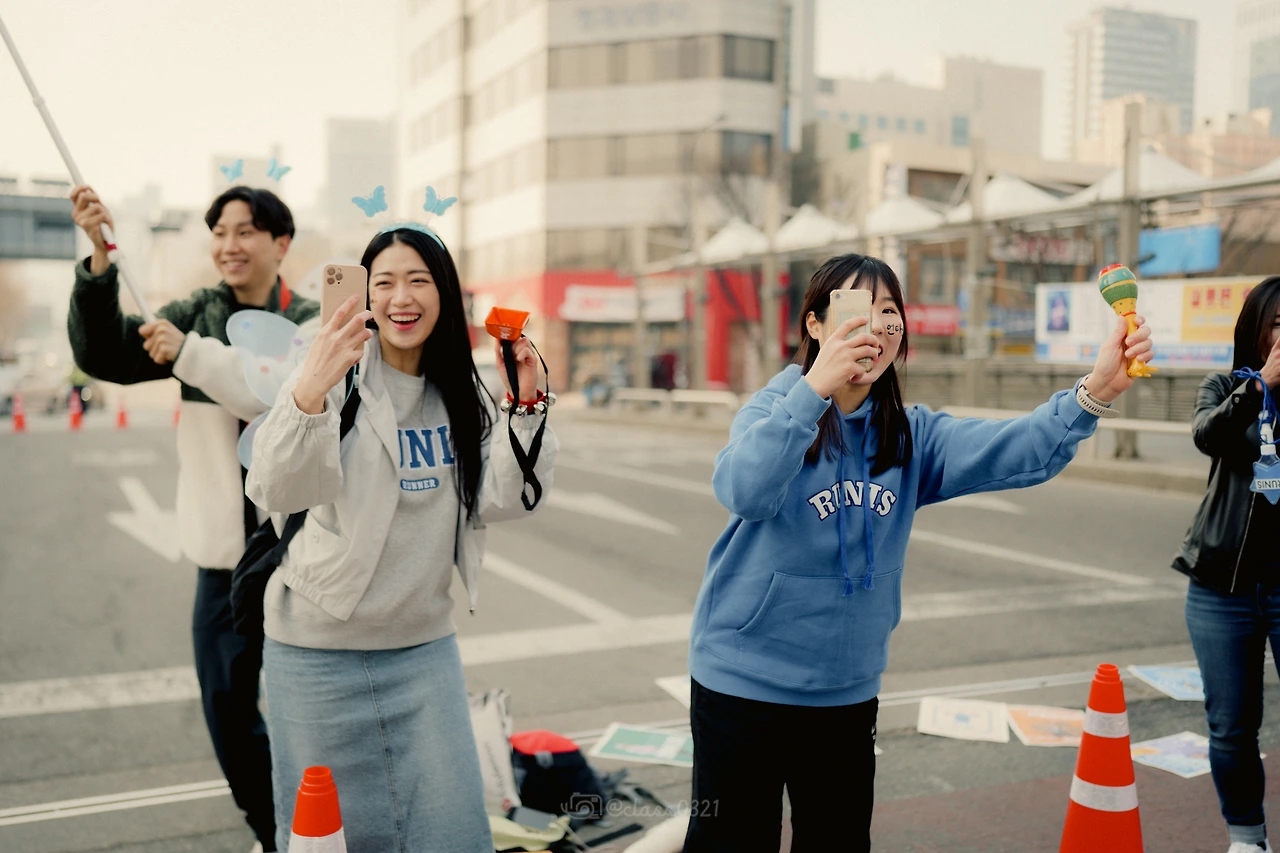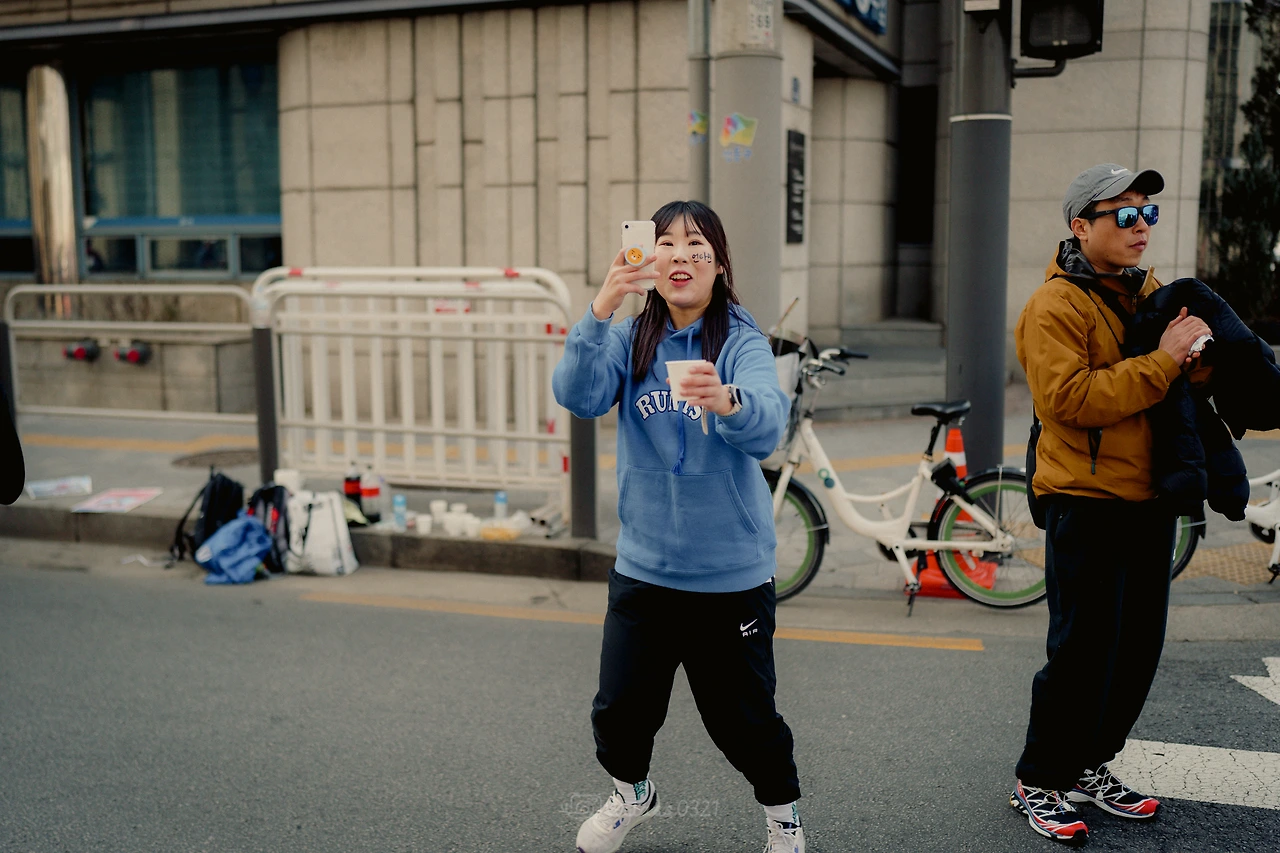 나도 신기해. 근데 그 많은 사람 중 내가 찾는 사람이 딱 보여. 대회 때는 대부분 주최 측에서 나눠주는 단체티를 입고 있어서 정말 비슷비슷한데 청계천 건너편에 뛰고 있는 크루원들을 발견한다니깐. 응원할 때는 뛰는 사람들의 속도를 다 미리 알고 있어서, 예측 하면서 그 사람을 찾긴 해.