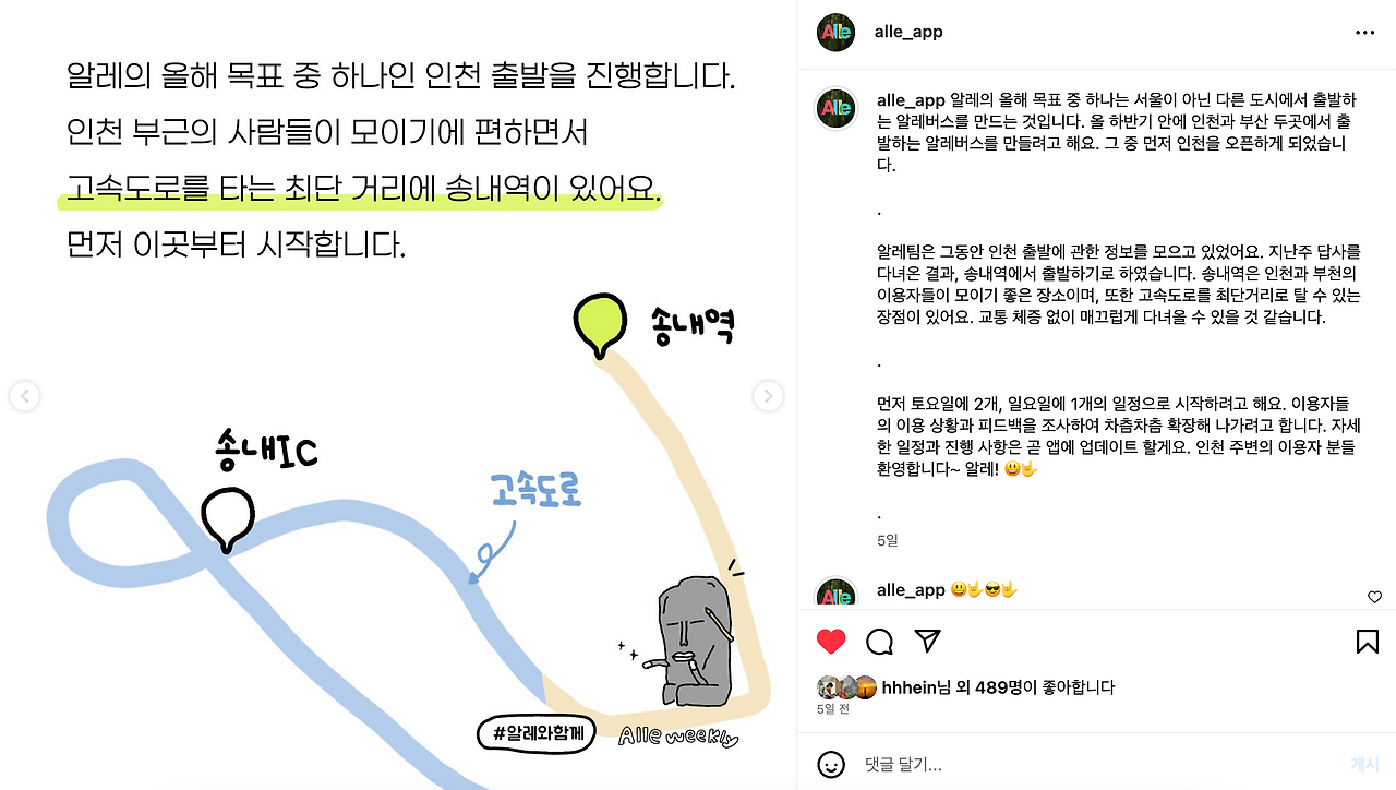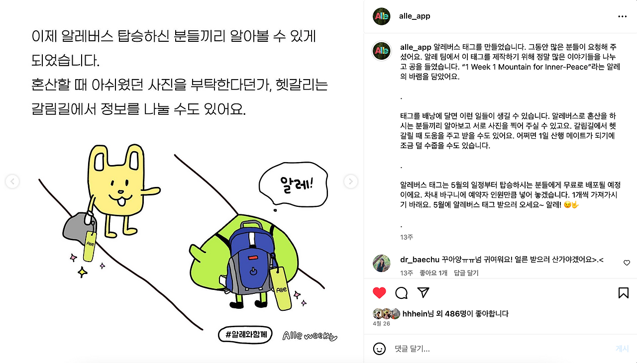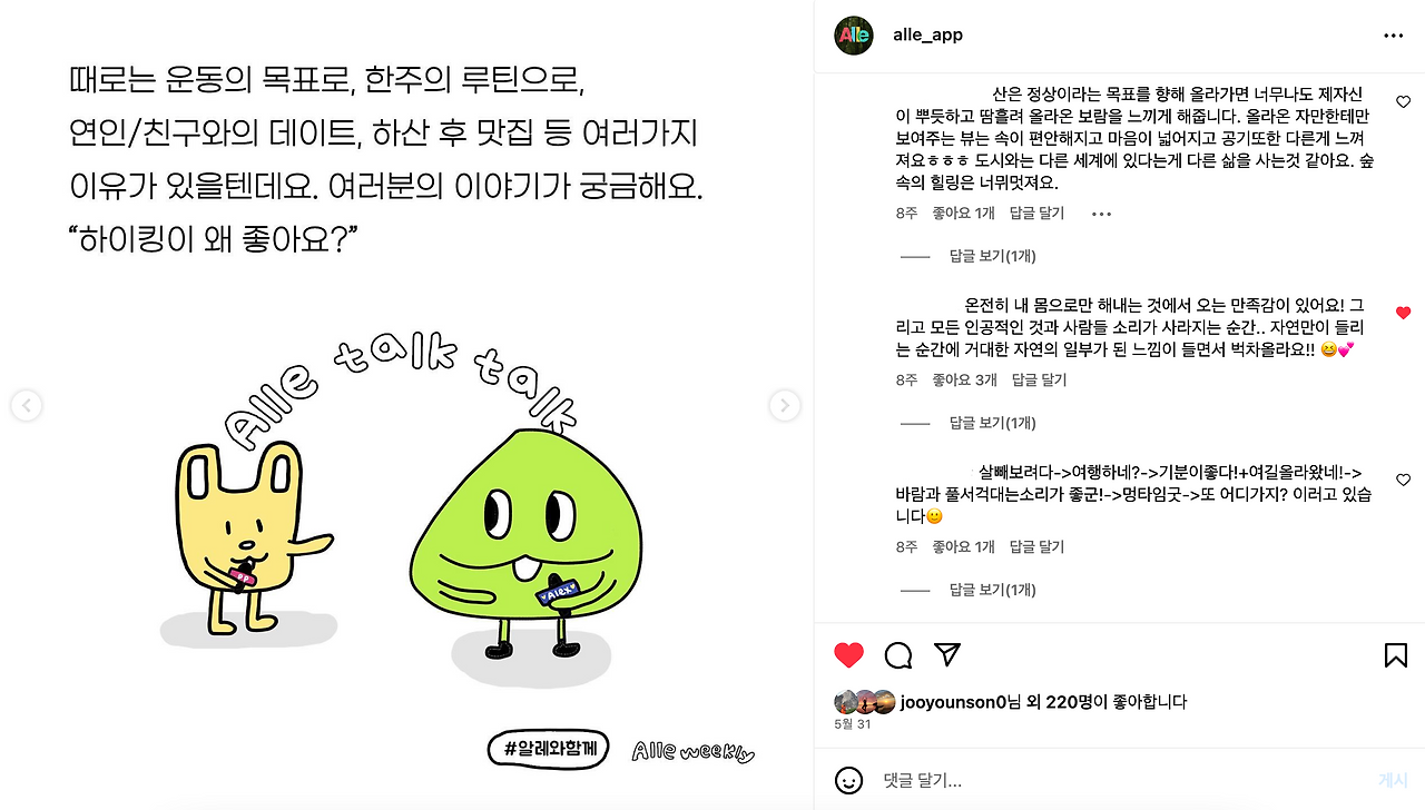3. 알레 인스타그램: www.instagram.com/alle_app