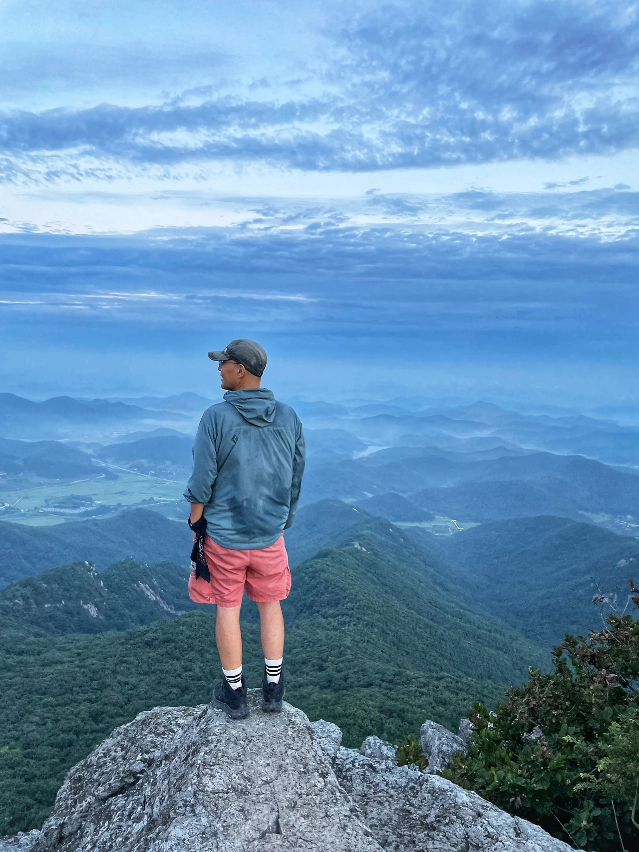 등산 말고도 다른 운동도 많이 했어요. 슬램덩크 세대로서, 20대 때 농구를 시작으로 나름 생활체육인 라이프를 하고 있답니다. 30대에는 사회인 야구를, 코로나 전까지는 배드민턴을 쳤어요. 주로 단체 운동을 즐겨하다가 코로나가 터지면서 운동을 뭘 해야 하나 할 때, 가족과 전라북도 무주의 어사 둘레길에 산책을 갔어요. 계곡물이 흐르고, 풀냄새가 피어나는데 가족들과 도란도란 이야기하는 시간이 정말 좋았어요. 걸으면서 '와 풍경 좀 봐', '물소리 정말 좋다'처럼 단순한 이야기를 하는데 기억에 오래 남더라고요. 그 경험을 시작으로 산을 가봐야겠다고 생각을 하면서 가족과 등산을 다니기 시작했어요.