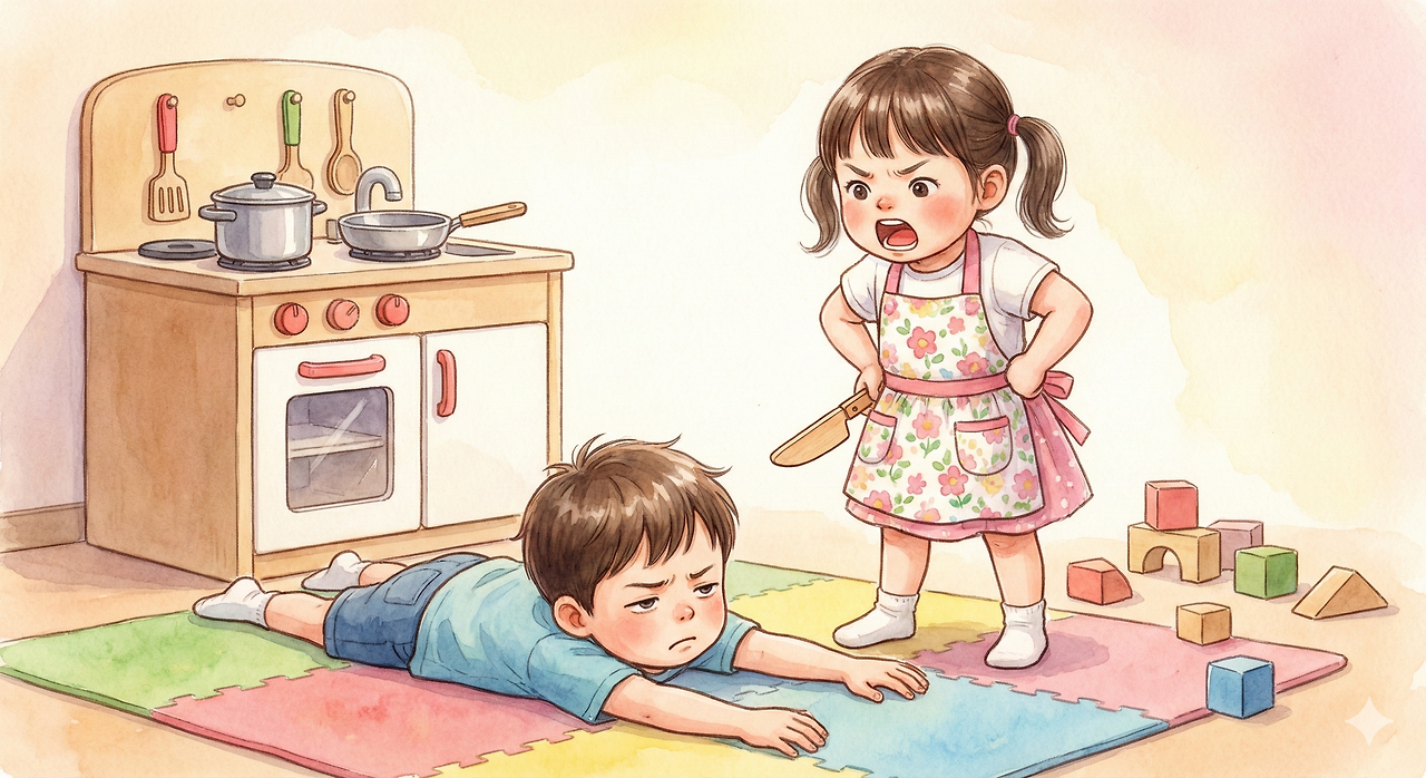 민준이와 다은이가 소꿉놀이 속에서 부부의 갈등을 재현하고 다시 화해하는 모습은 유아기의 상징적 사고와 사회적 학습이 동시에 작동하는 순간이며, 아이들은 놀이를 통해 갈등 상황을 안전하게 탐색하고 감정을 표현하며 관계의 회복을 경험합니다.