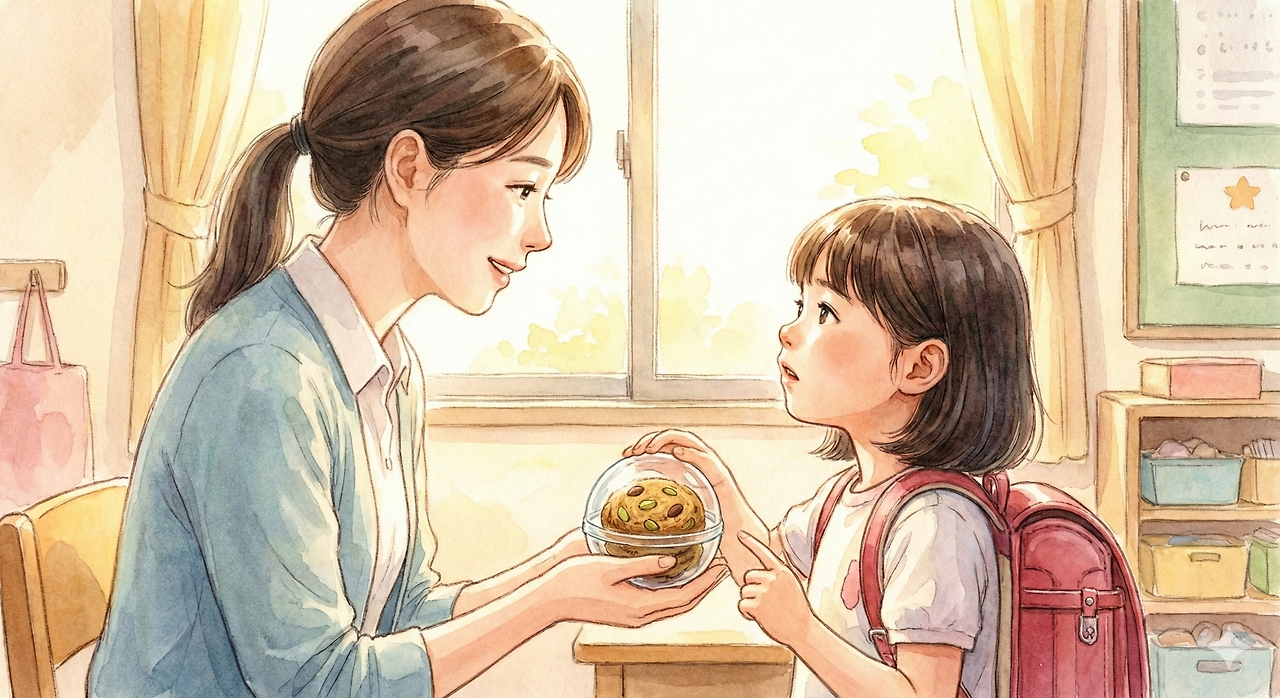 선생님, 이거 드셔보세요. 엄마랑 같이 만든 거예요.