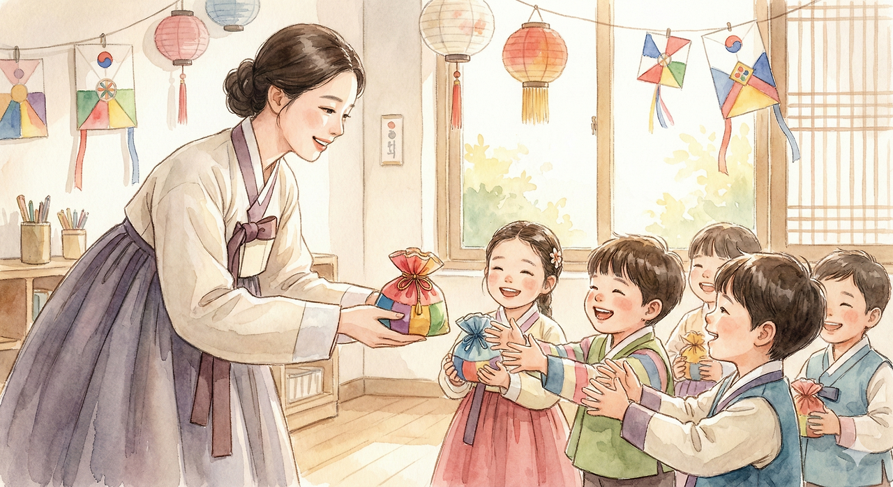 세배와 같은 전통적 인사는 단순한 동작이 아니라 존중과 감사의 마음을 표현하는 방법을 배우는 과정이고, 교사가 이를 따뜻하게 받아들이며 덕담을 건네는 순간은 아이들에게 정서적 안정감과 관계적 신뢰를 심어줍니다. 또한 세뱃돈이나 작은 선물을 기대하는 모습은 유아기의 발달적 특징인 보상에 대한 인식과 사회적 규칙의 이해를 보여주는데, 교사가 이를 단순히 물질적 보상으로만 채우지 않고 상징적이고 따뜻한 방식으로 응답할 때 아이들은 나눔과 감사의 가치를 배우게 됩니다.