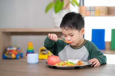 "성원이 마음이 많이 속상했구나. 울고 싶을 땐 울어도 괜찮아.그런데, 떨어진 숟가락은 다시 깨끗이 씻어서 사용할 수 있으니 너무 걱정하지 마"