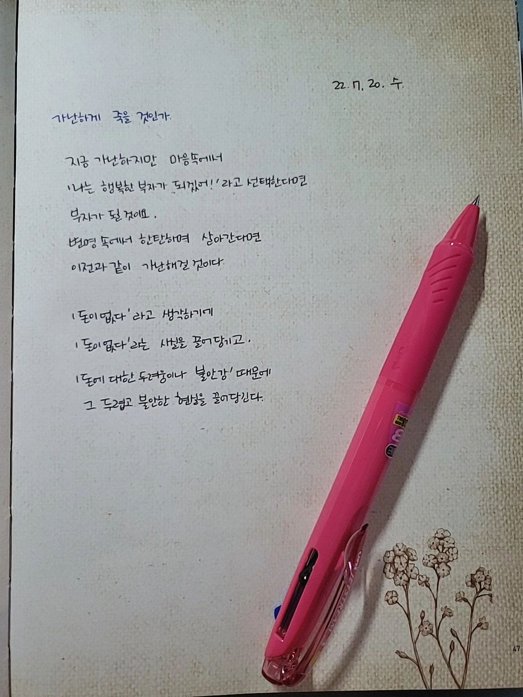 가난을 끌어당기고 있는지 부자의 마인드를 끌어당기고 있는지 한 번 생각해봐야겠다.