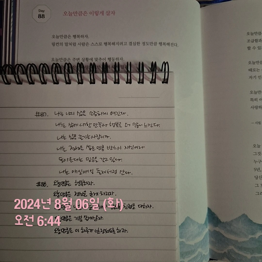 새벽에 일어나 명상 1분/확언필사 1분/스트레칭 10분 한 뒤