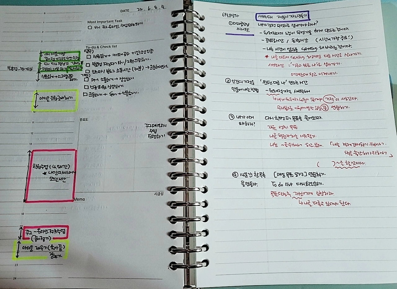 제일 먼저 바인더를 작성하며 피드백 및 일일 계획을 세웁니다.